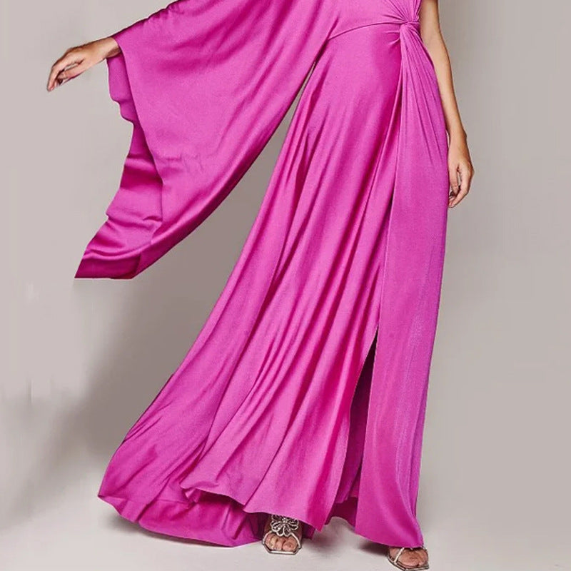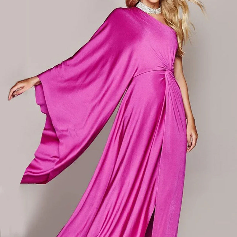 Women's Fashion Solid Color Crossbody Strapless Dress