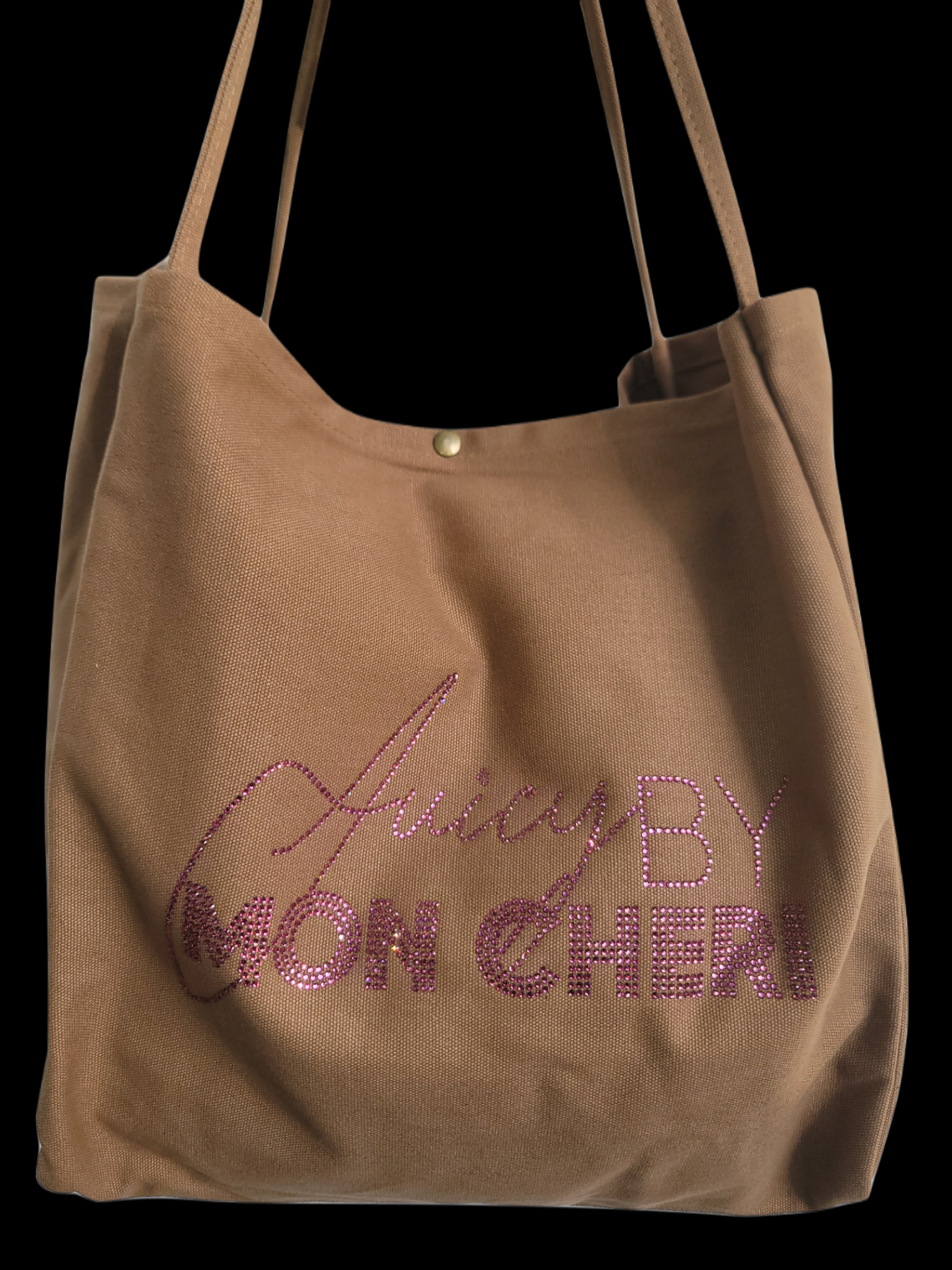 Make a statement with this stylish camel shoulder bag featuring a touch of pink bling. With dimensions of 16" x 16" x 6.3", it's the perfect size for all your shopping needs.