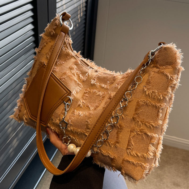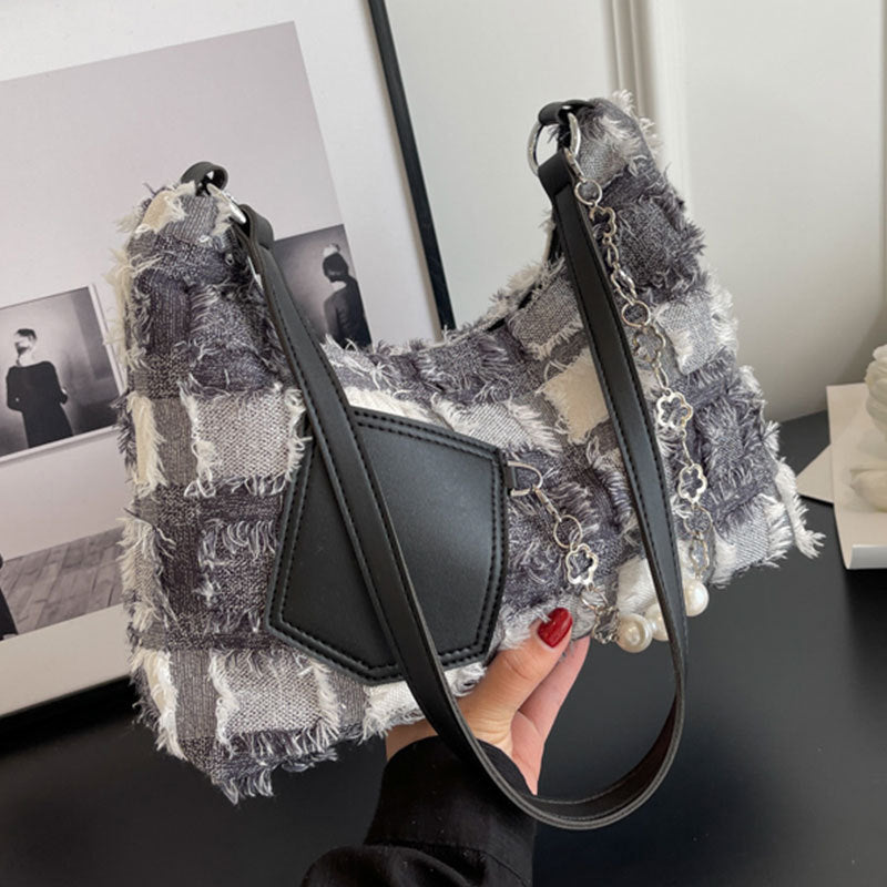 Women's Fashion Hand-carried Checkered Chain Hundred Crossbody Bag
