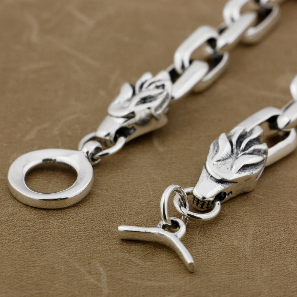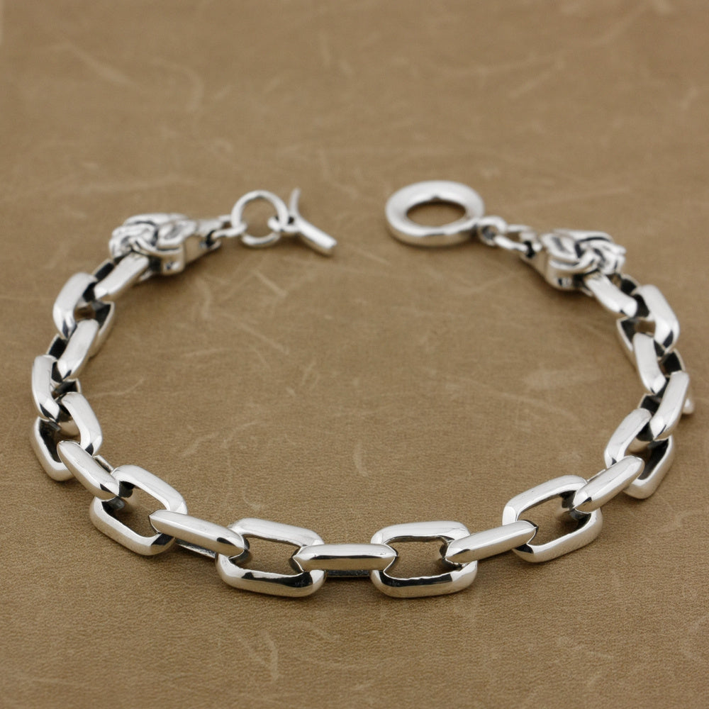 S925 Vintage Thai Silver Men's Square Ring Double Faucet Bracelet