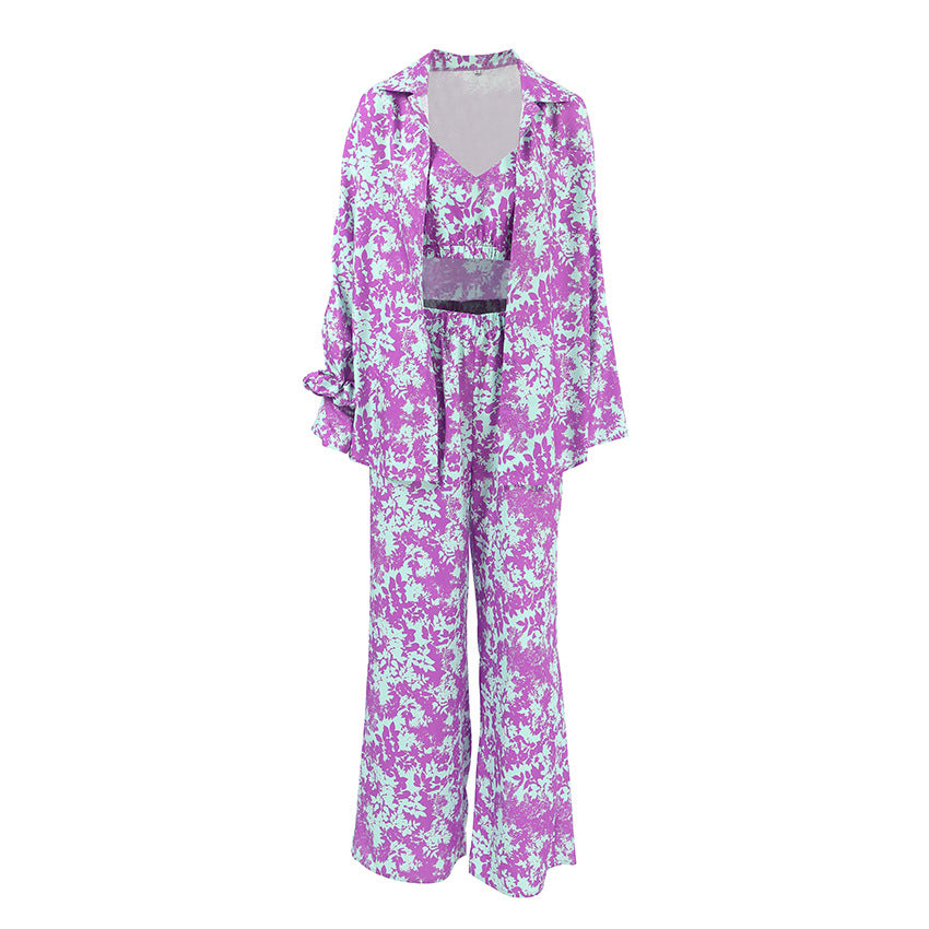 Printed Long-sleeved Underwear And Trousers Three-piece Set