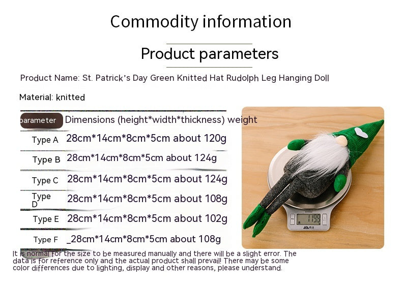 Size: green (men's) knitted hat hanging leg doll white beard, women green knitted hat hanging leg doll white beard, green knitted hat hanging leg doll gray beard men, green knitted hat hanging leg doll gray beard women, green knitted hat hanging leg doll orange beard men, green knitted hat hanging leg doll orange beard women