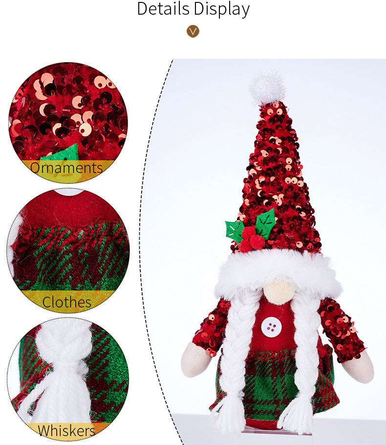 Christmas Decorations Sequin Cap Faceless Doll Ornaments