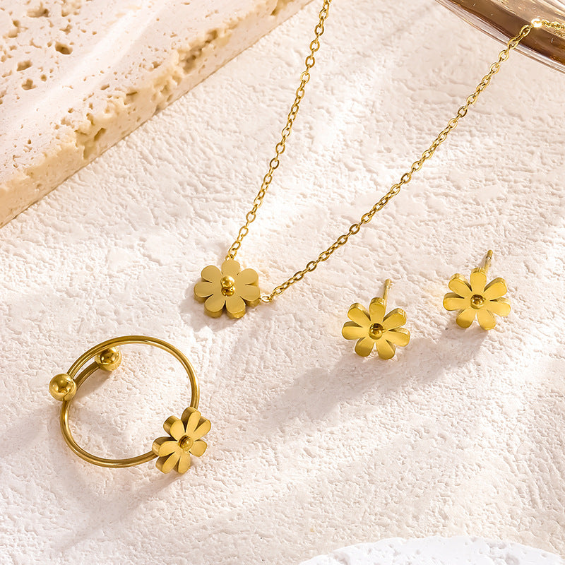 Color: 8995 little Daisy necklace gold, 3308 little Daisy ring Gold, 5549 little Daisy stud earrings gold