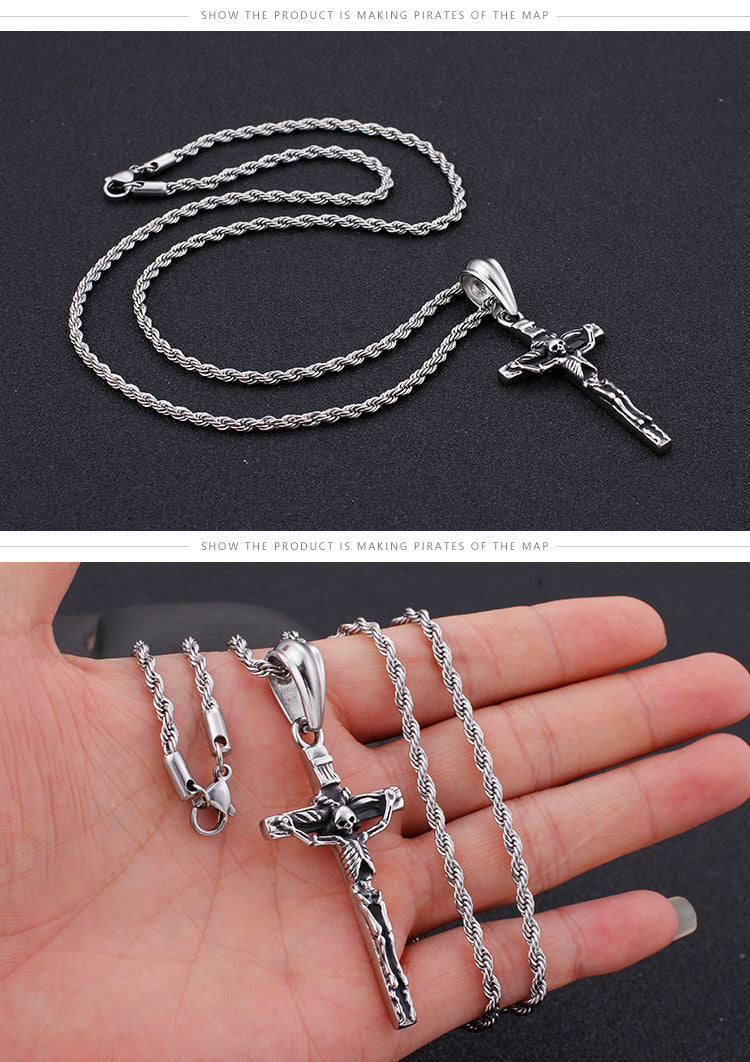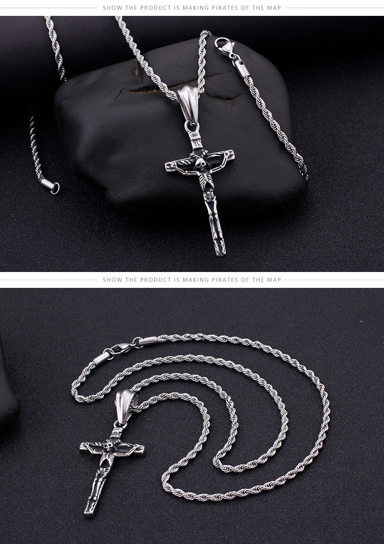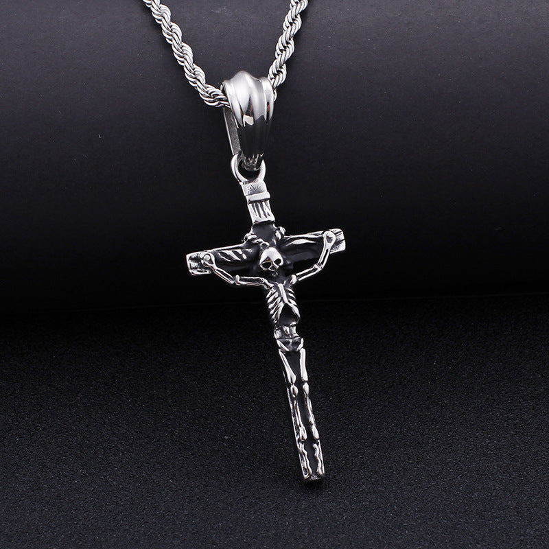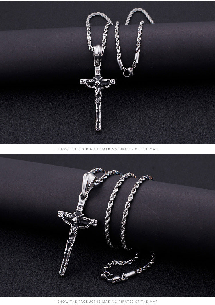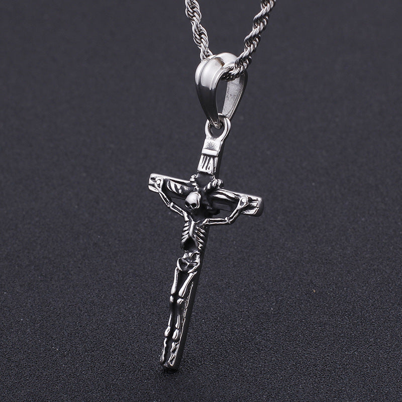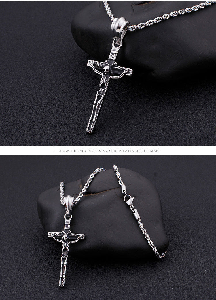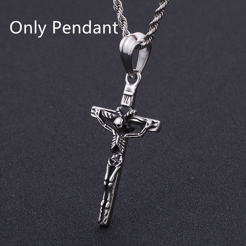 Retro Fashion Jewelry Cross Pendant Personality Cool Skull Men's Stainless Steel Pendant