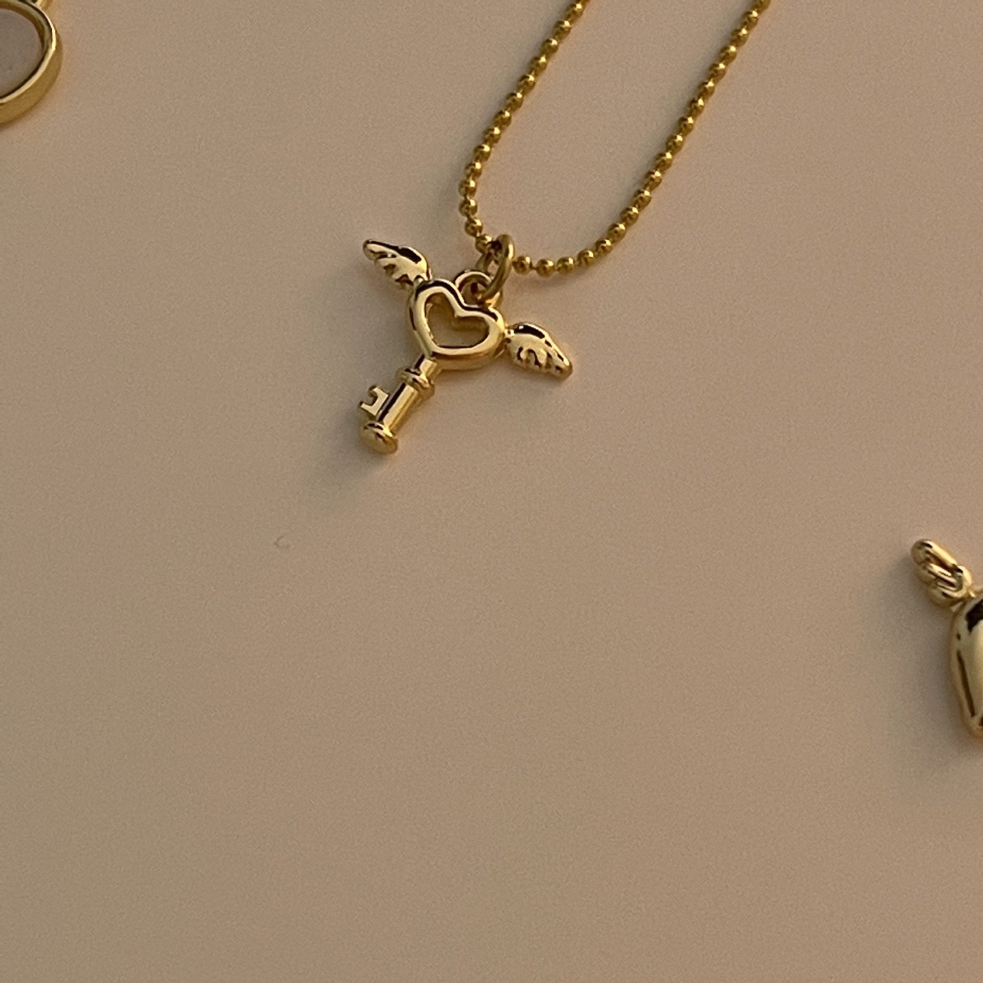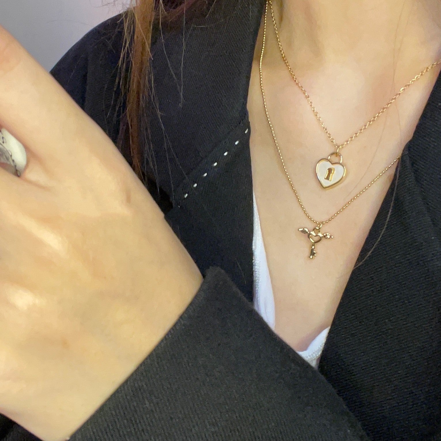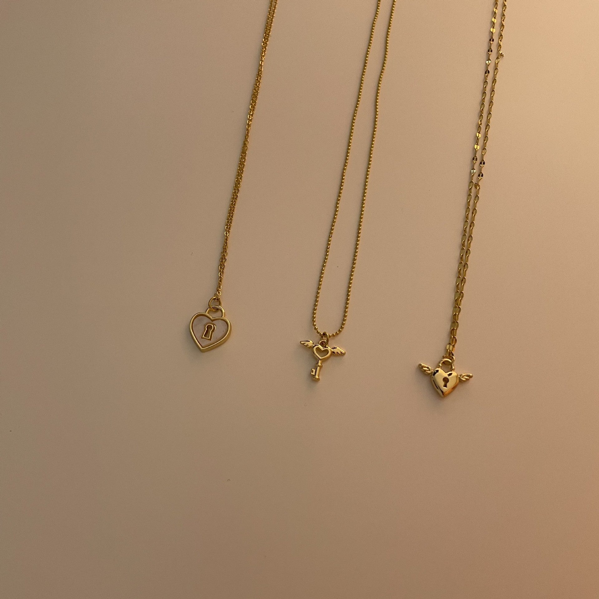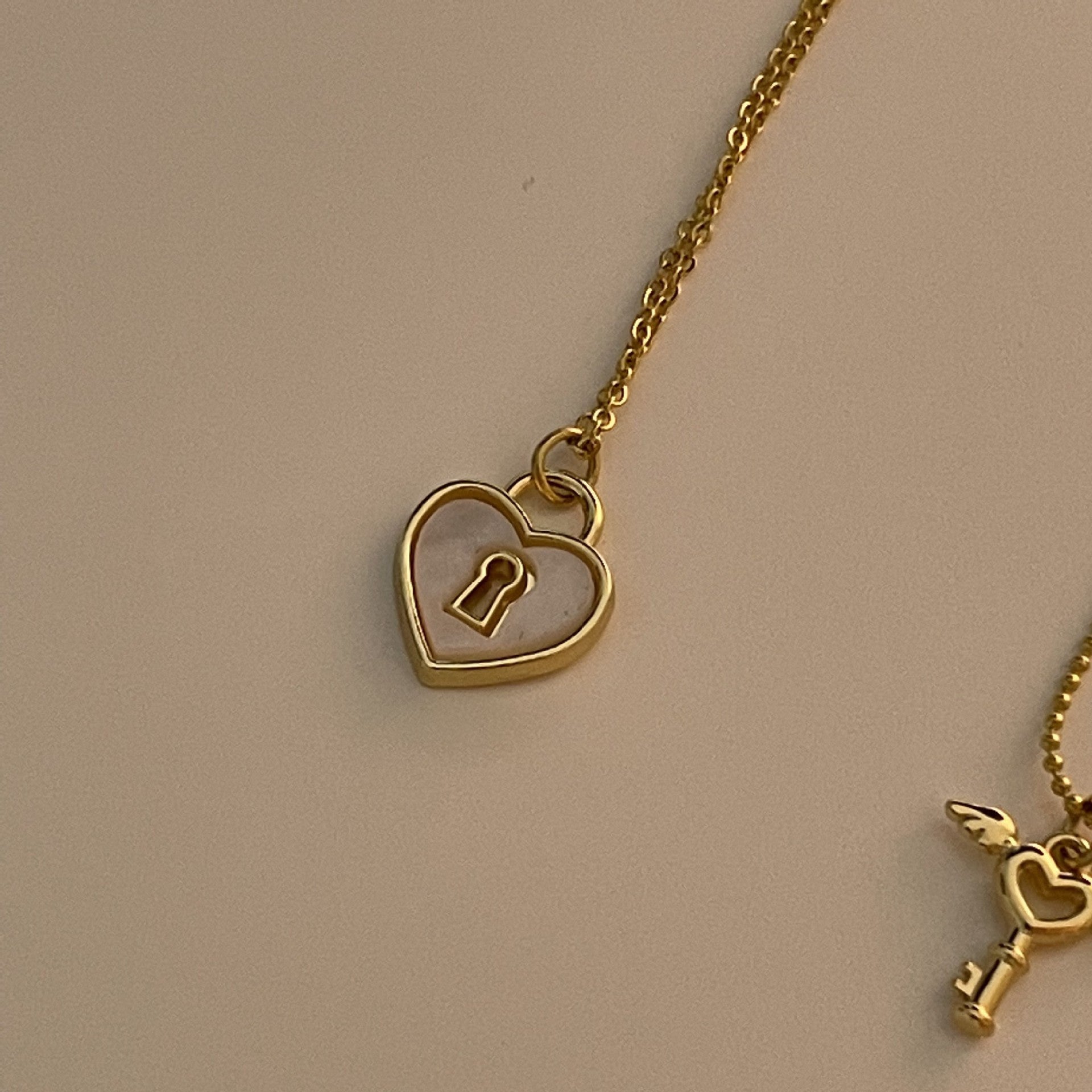 One white heart necklace, one key heart angel necklace