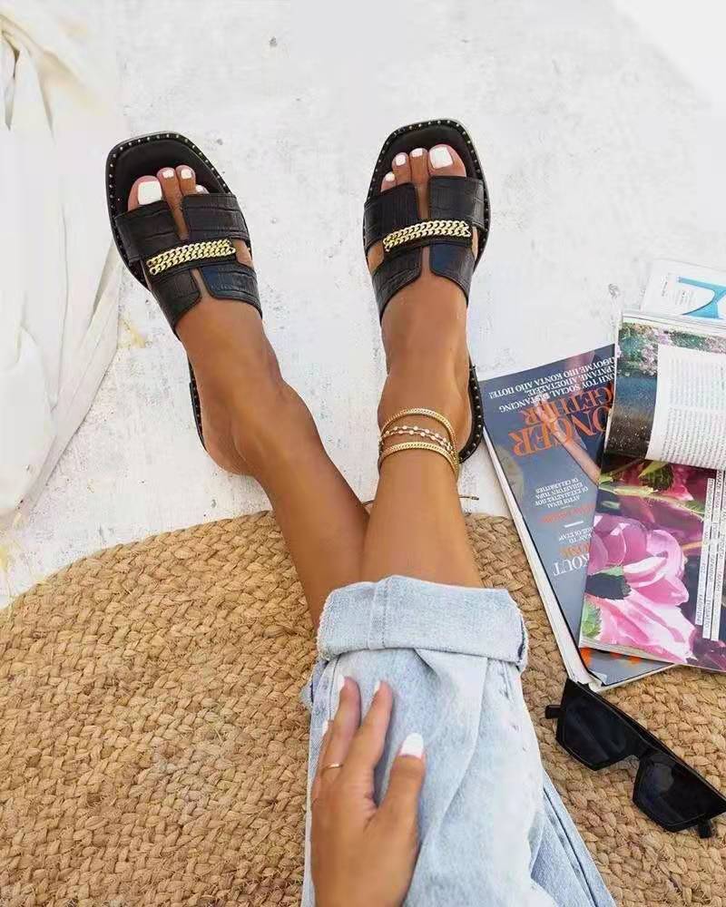 Beach Casual Flat Heel Chain One-line Women's Sandals