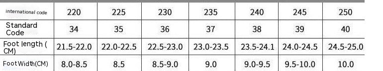 Size: 36, 37, 38, 39, 40, 41, 42, 43