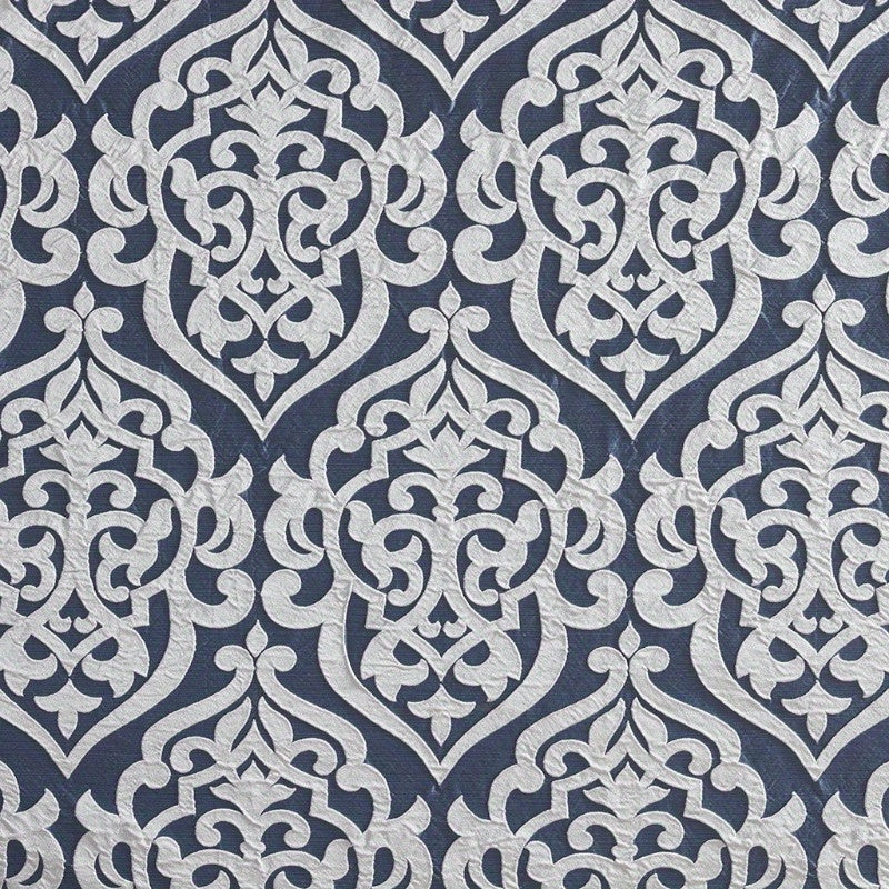 Enhance the elegance of your bathroom by incorporating our Madison Park Odette Jacquard Shower Curtain. This opulent textured shower curtain showcases a stunning silver damask medallion pattern on a striped navy jacquard background, introducing a luxurious feel with intricate details. Sized at 72x72 inches, each shower curtain is equipped with 12 buttonholes at the top for effortless attachment of hooks and hanging on a rod (hooks and rod not included). For optimal maintenance of this exquisite shower curtain, we highly recommend using a water-repellent liner, which can be purchased separately (liner not included). Machine washable for convenient care; complement your decor with matching bedding, also available for separate purchase.
