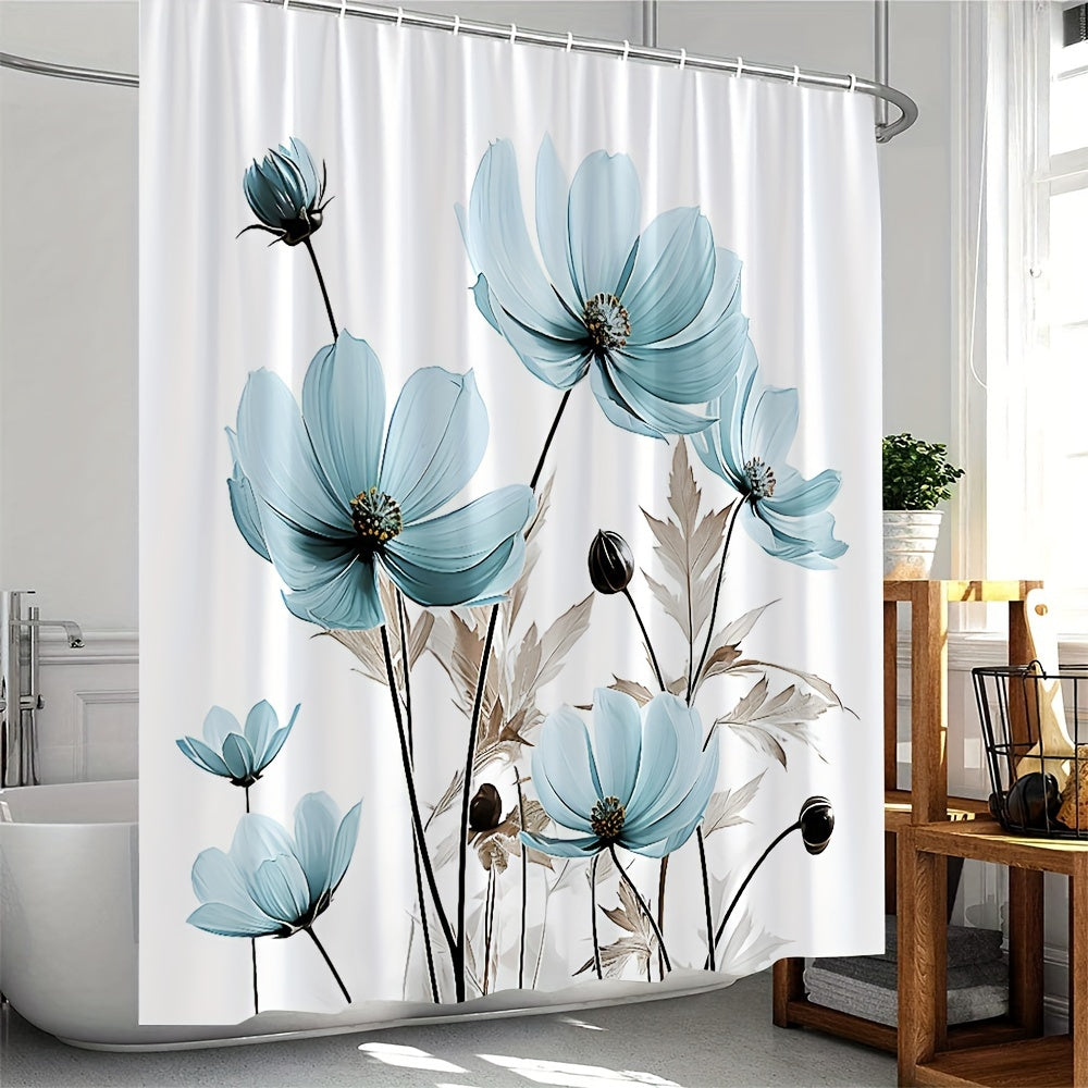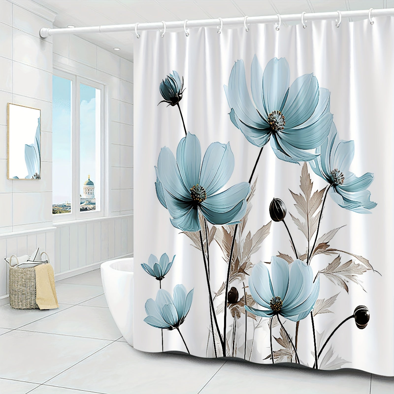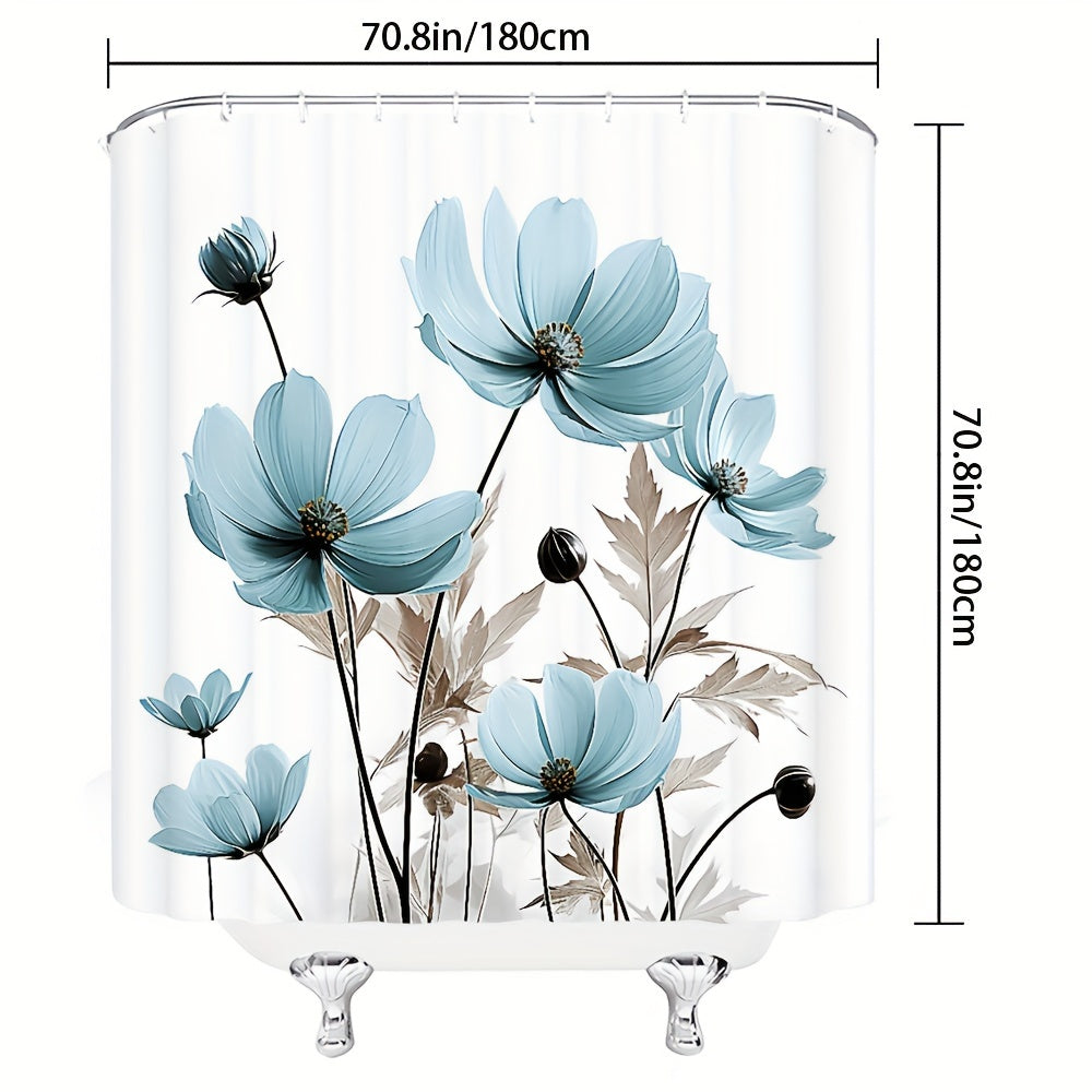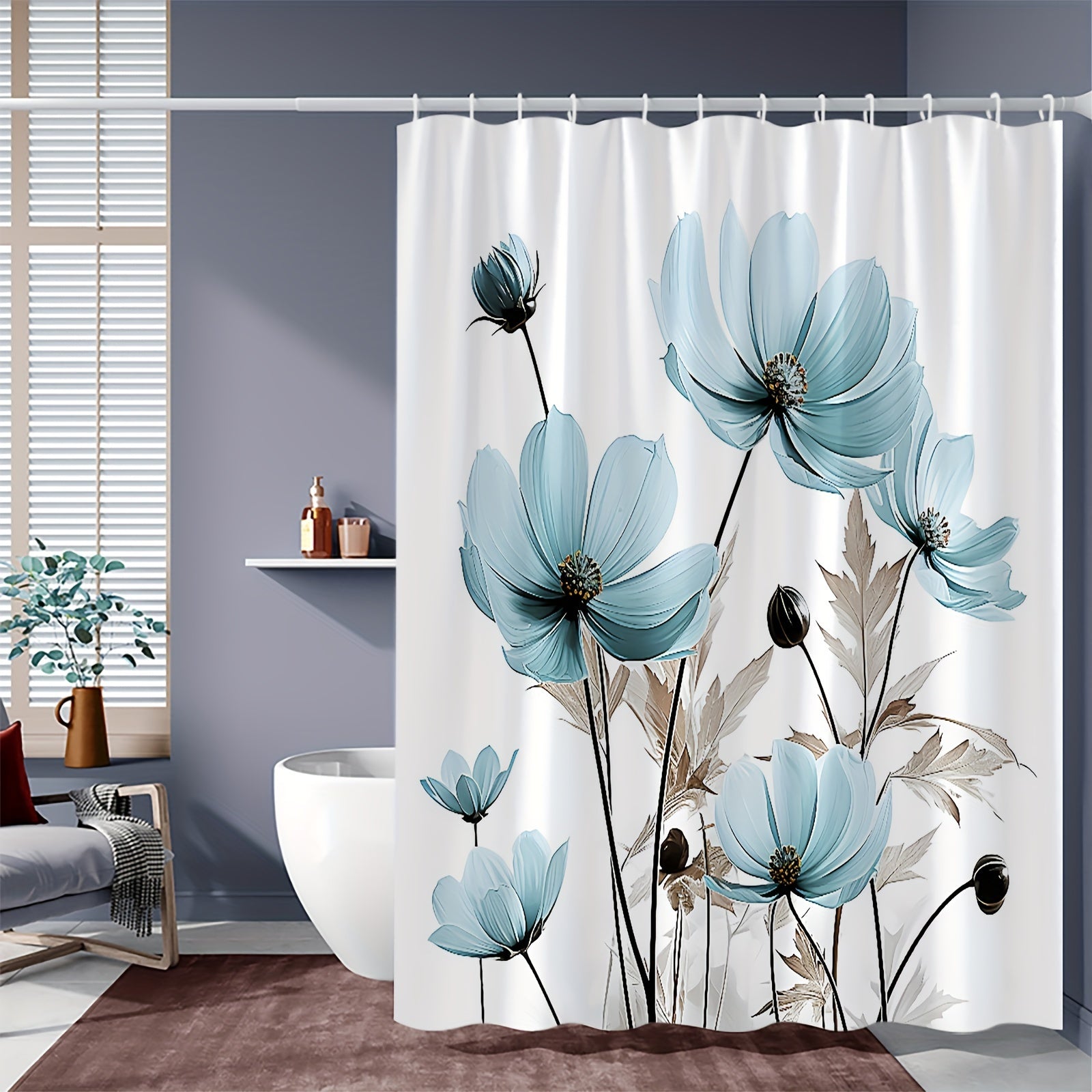 1pcs Grey Teal Daisy Shower Curtain Rustic Elegant X-Ray Wildflower Spring Farmhouse Unique Blue Turquoise And Gray Floral Plant Country Fashion Simple Modern Girls Fabric Bathroom Curtains With Hooks70.8x70.8inch