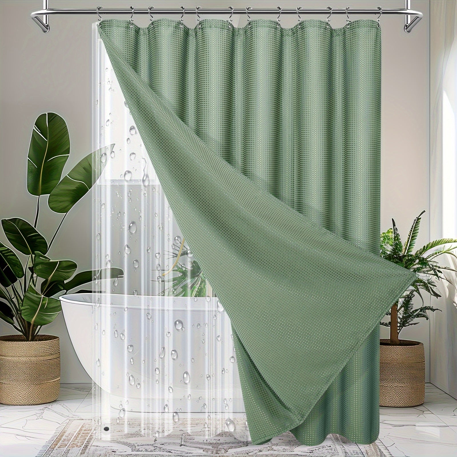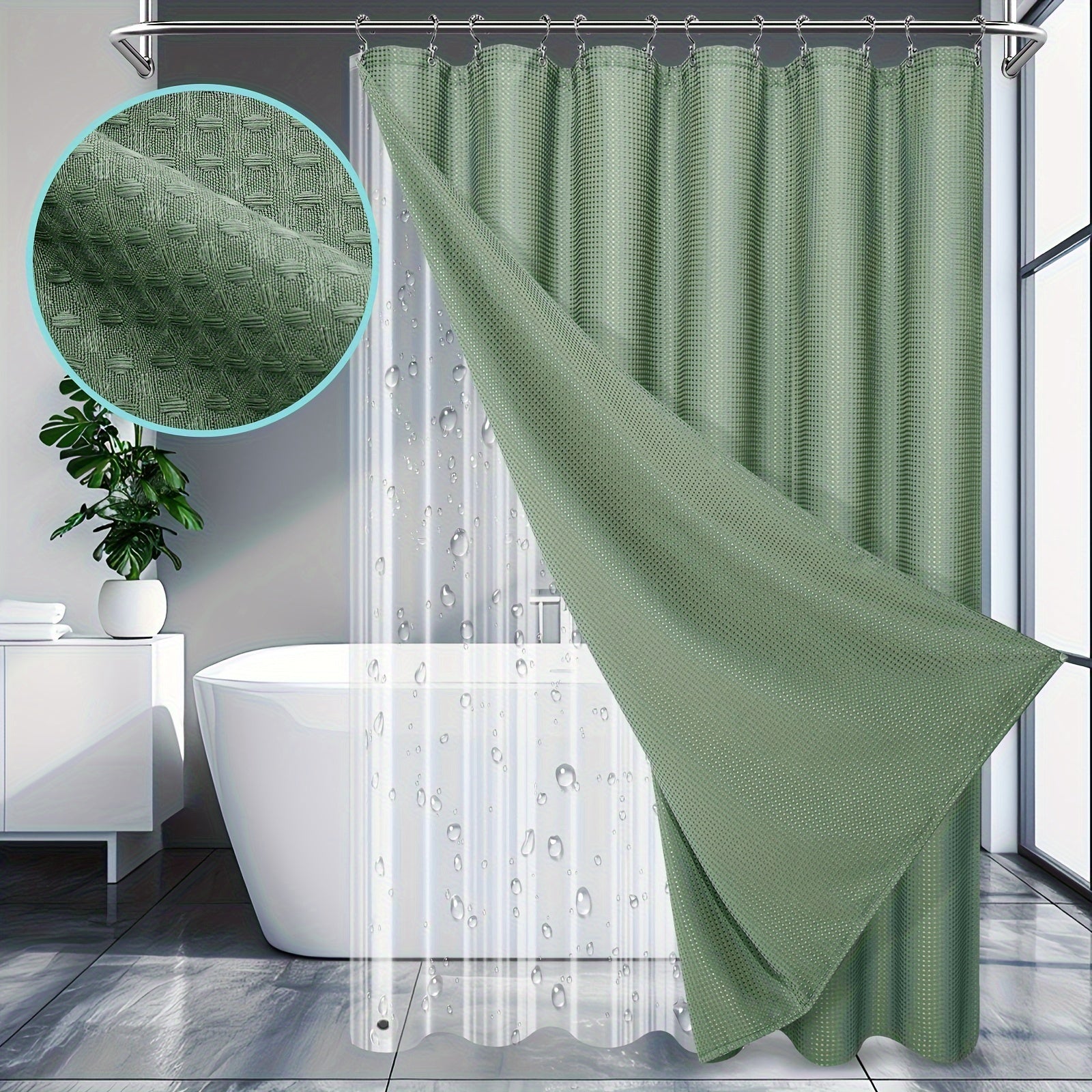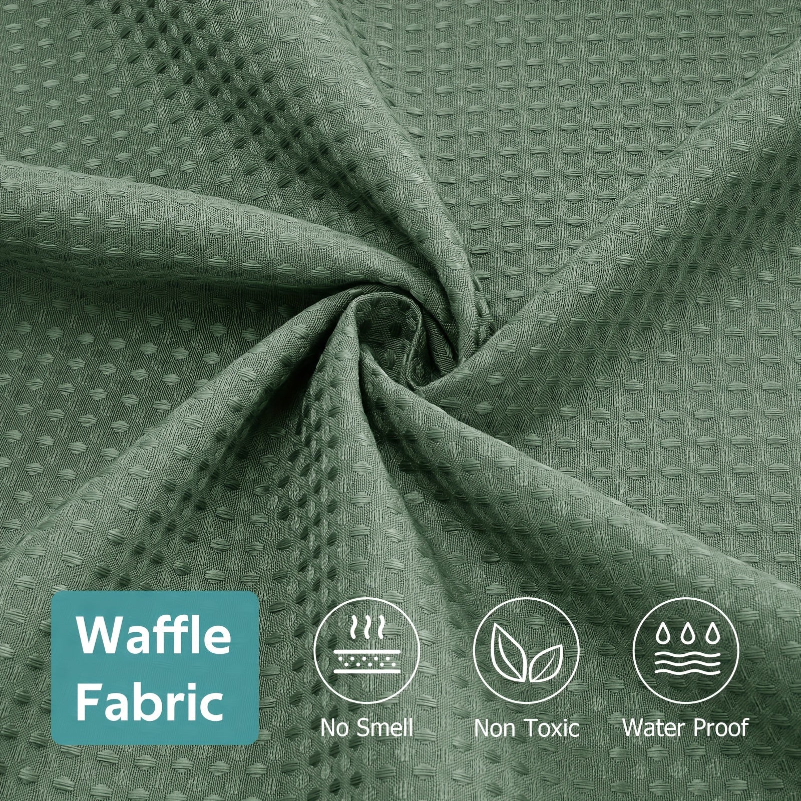 230gsm Waffle Shower Curtain + 10 Silk Thickness PEVA Shower Curtain Lining + Three-head Hook 72*72 Green