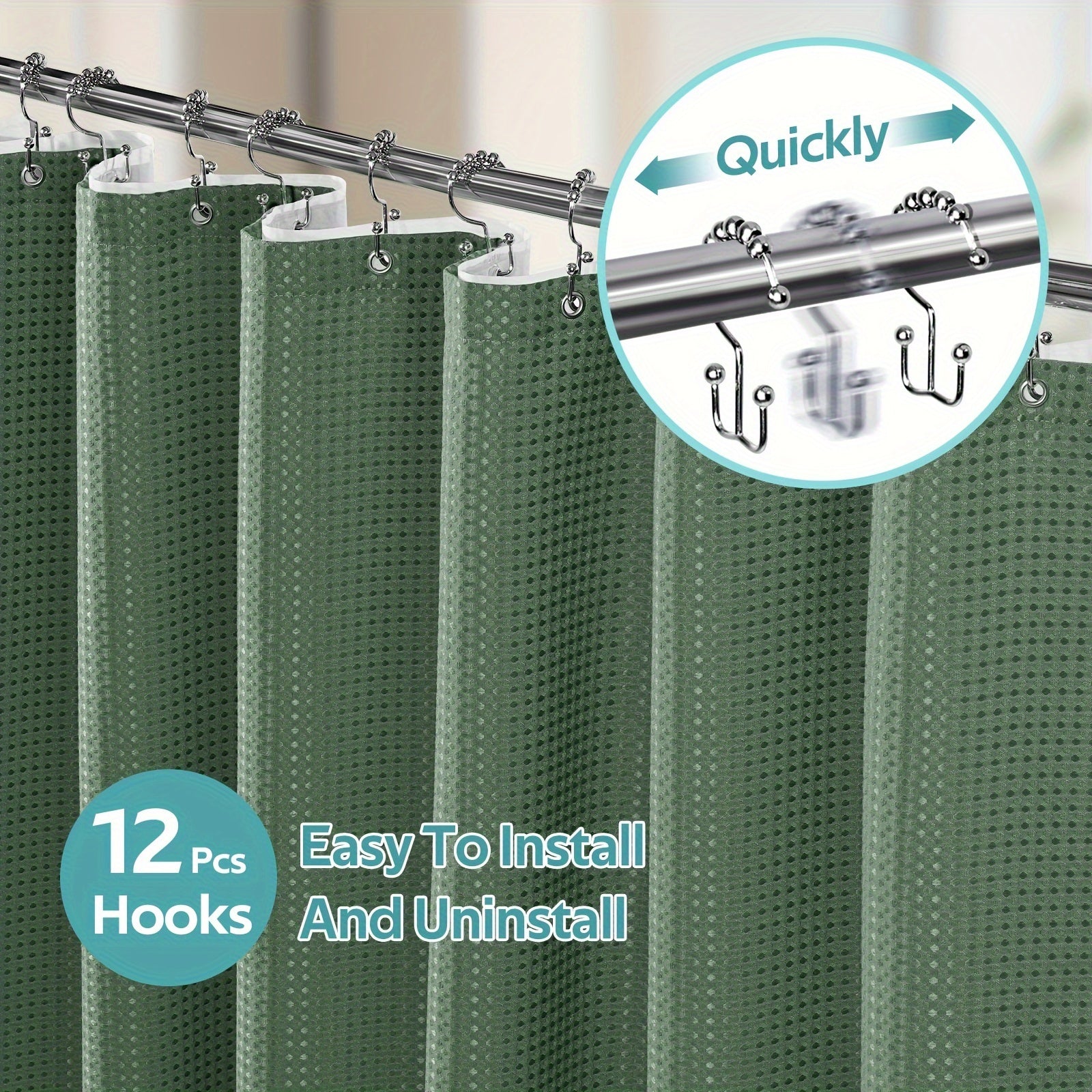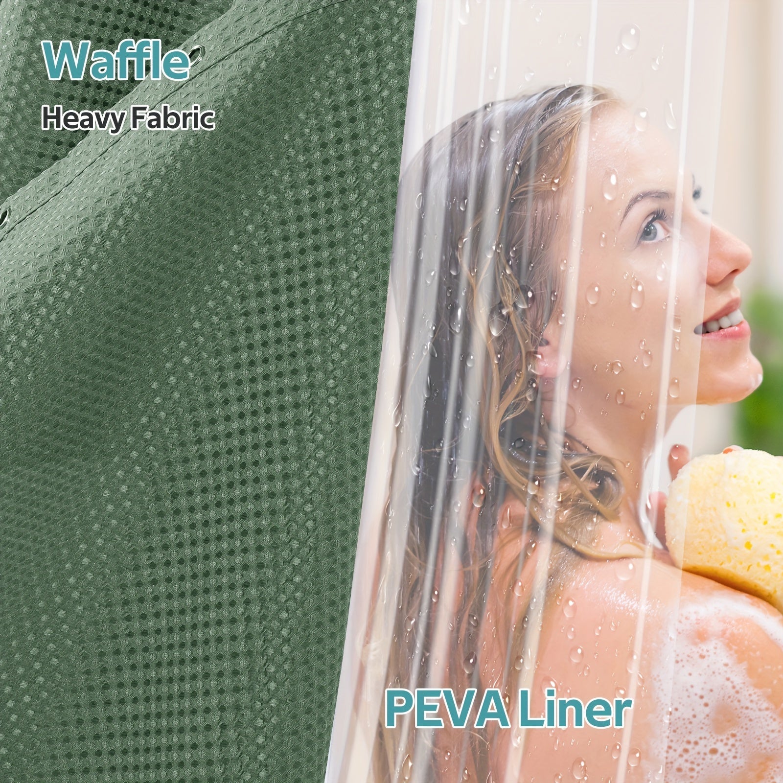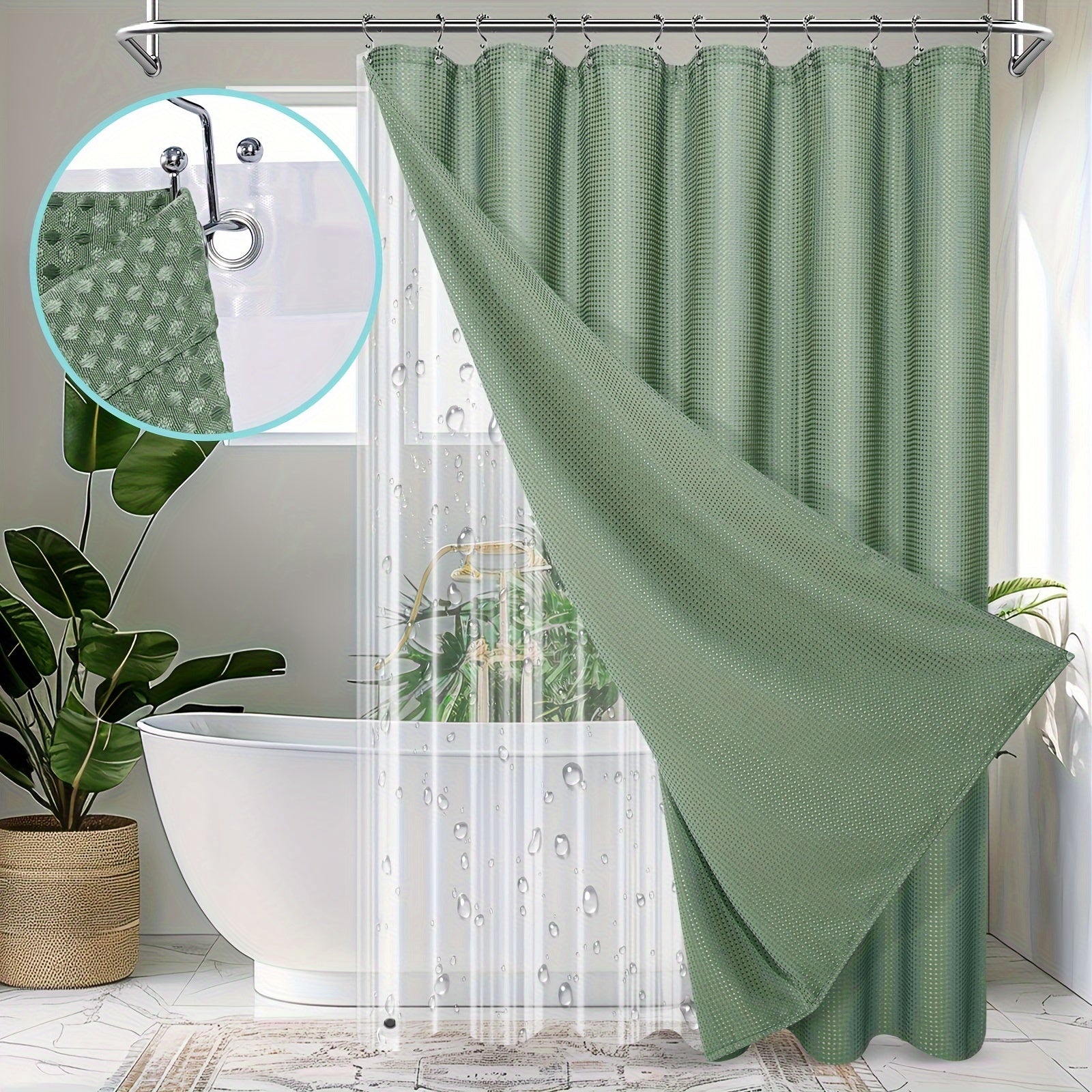 230gsm Waffle Shower Curtain + 10 Silk Thickness PEVA Shower Curtain Lining + Three-head Hook 72*72 Green
