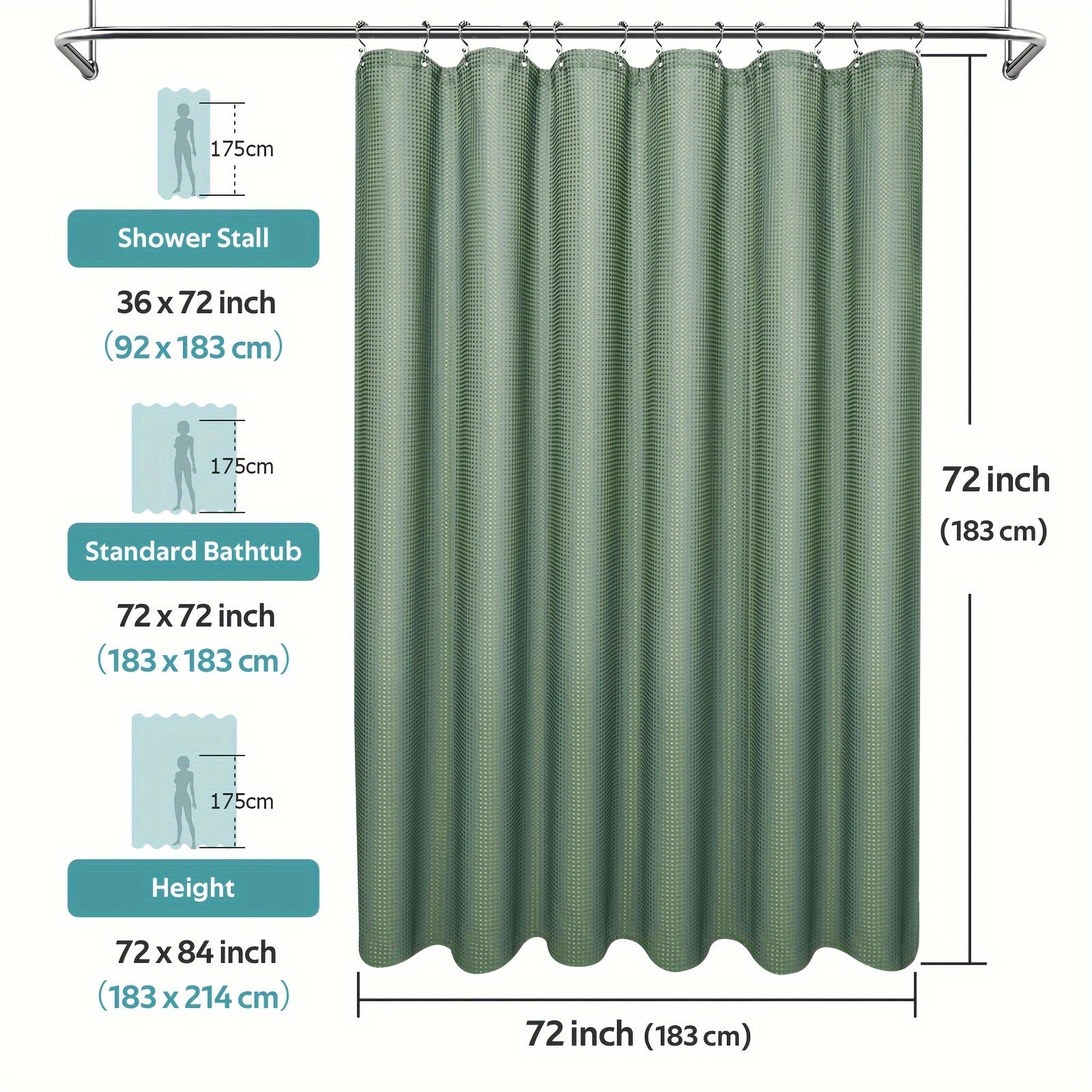 Features 【Dimensions】72W * 72H Inch (183W * 183Hcm); 258GSM (Gram Per Square Meter), About 1.1 Pounds Heavier Than Normal 90GSM Fabric Shower Curtains; 12 Rust-resistant Grommets That Fit Most Standard Shower Hooks Or Rings. Package Includes 1 Waffle Shower Curtain And 12 Plastic Hooks.