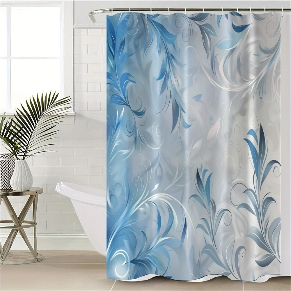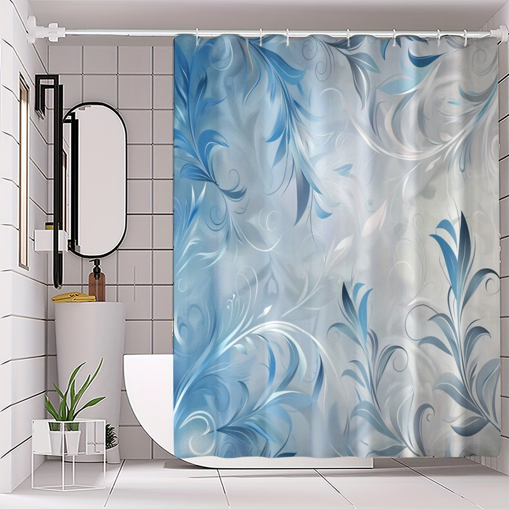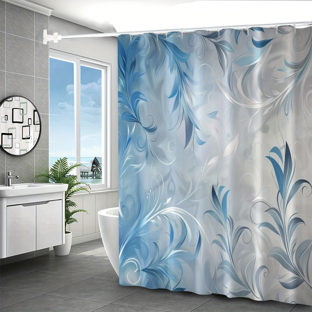 4 pcs blue and white grass digital printing polyester waterproof bath curtain non-punching partition bathroom bathroom four-piece set