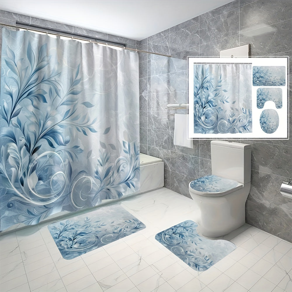 4 pcs blue grass digital printing polyester waterproof bath curtain non-punching partition bathroom bathroom four-piece set