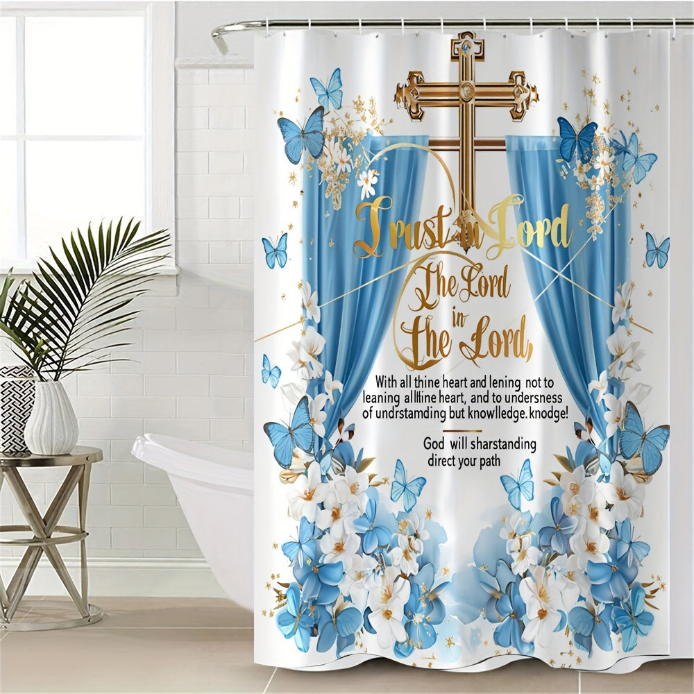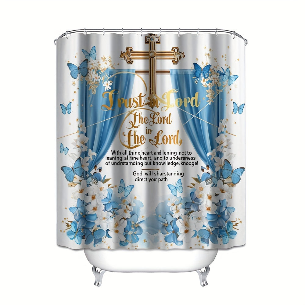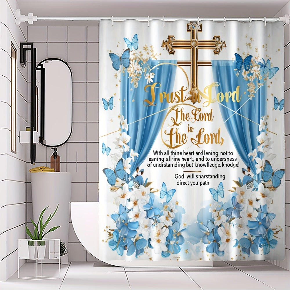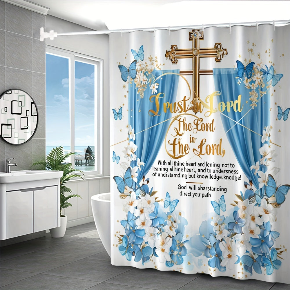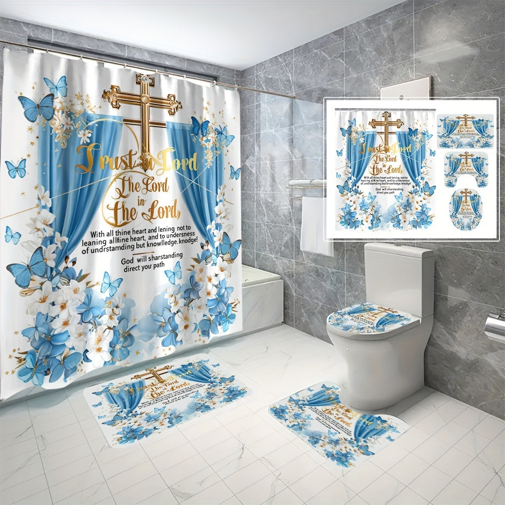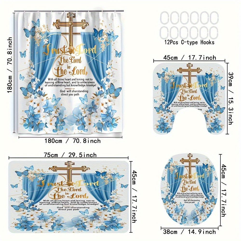 4 pcs butterfly bath curtain Digital printed polyester waterproof bath curtain non-punching partition bathroom bathroom four-piece set