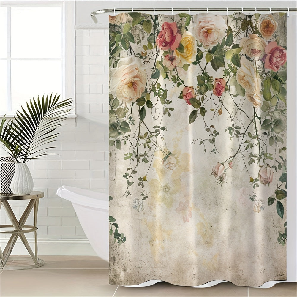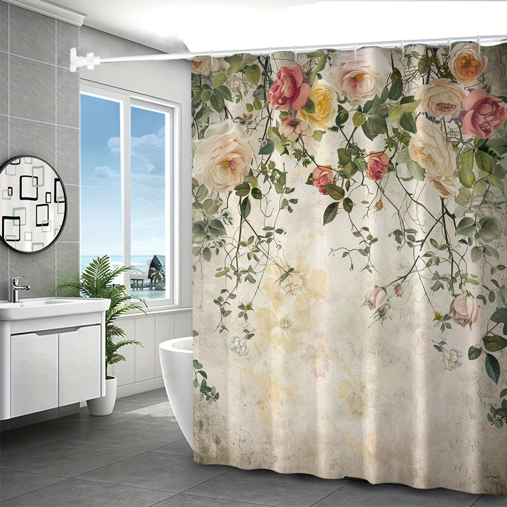 4 pcs flower branch digital printing polyester waterproof bath curtain non-punching partition bathroom bathroom four-piece set