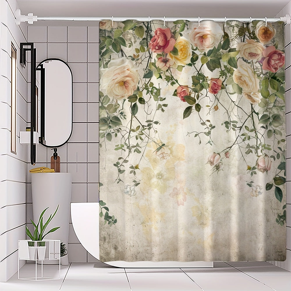 4 pcs flower branch digital printing polyester waterproof bath curtain non-punching partition bathroom bathroom four-piece set