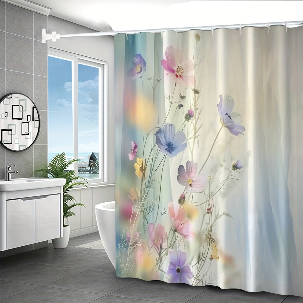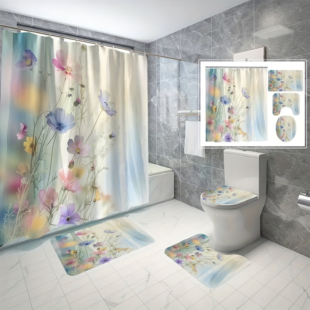 4 pcs flowers and plants digital printing polyester waterproof bath curtain non-punching partition bathroom bathroom four-piece set