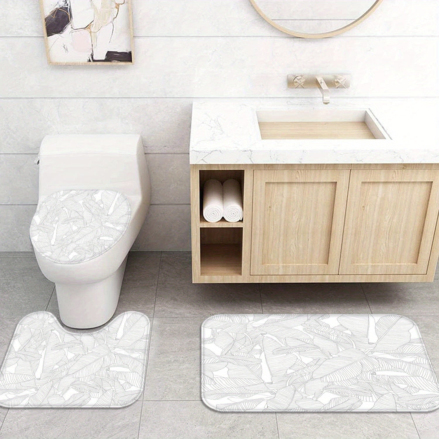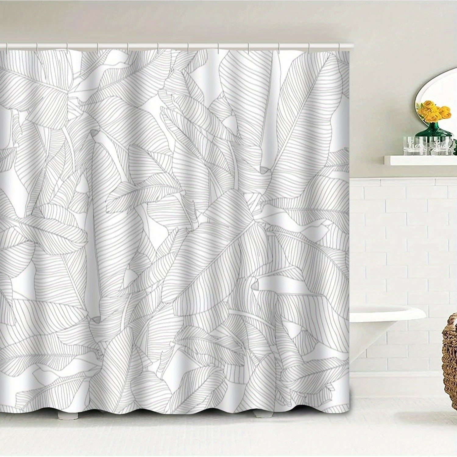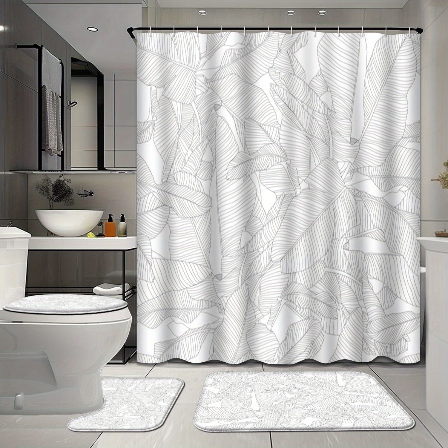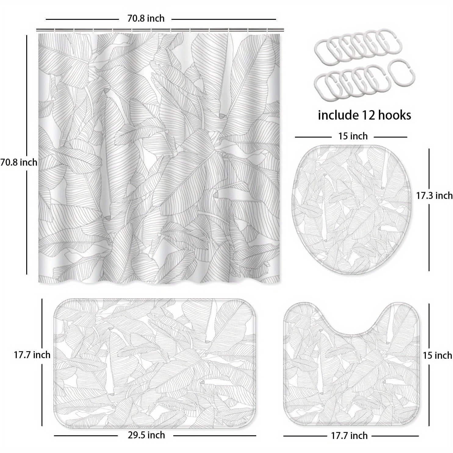 4Pcs Black White Palm Leaf Shower Curtain Set with Rugs for Bathroom Decor, Tropical Jungle Bathroom Shower Curtain Sets, Abstract Art Bathroom Sets with Shower Curtain and Rugs
