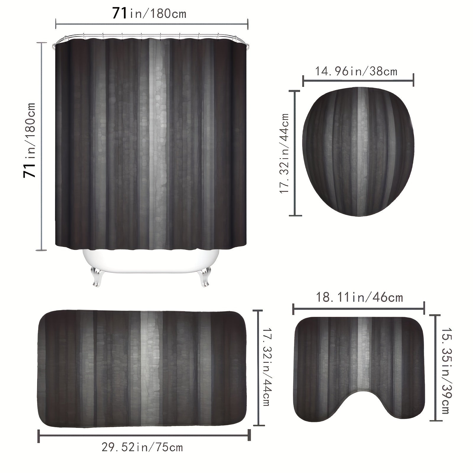 The Package Contains: 1 Shower Curtain (with 12 Hooks) 1 Base Carpet 1 Toilet Seat 1 Bath Mat [Quality Material] : This Shower Curtain Is Made Of Environmentally Friendly Polyester Material, Waterproof, Environmentally Friendly And Pollution-free. Non-slip Bath Mat/U-shaped Carpet With High Quality Sponge, Flannel, Non-slip Bottom, Strong Moisture Absorption, Fast Drying.