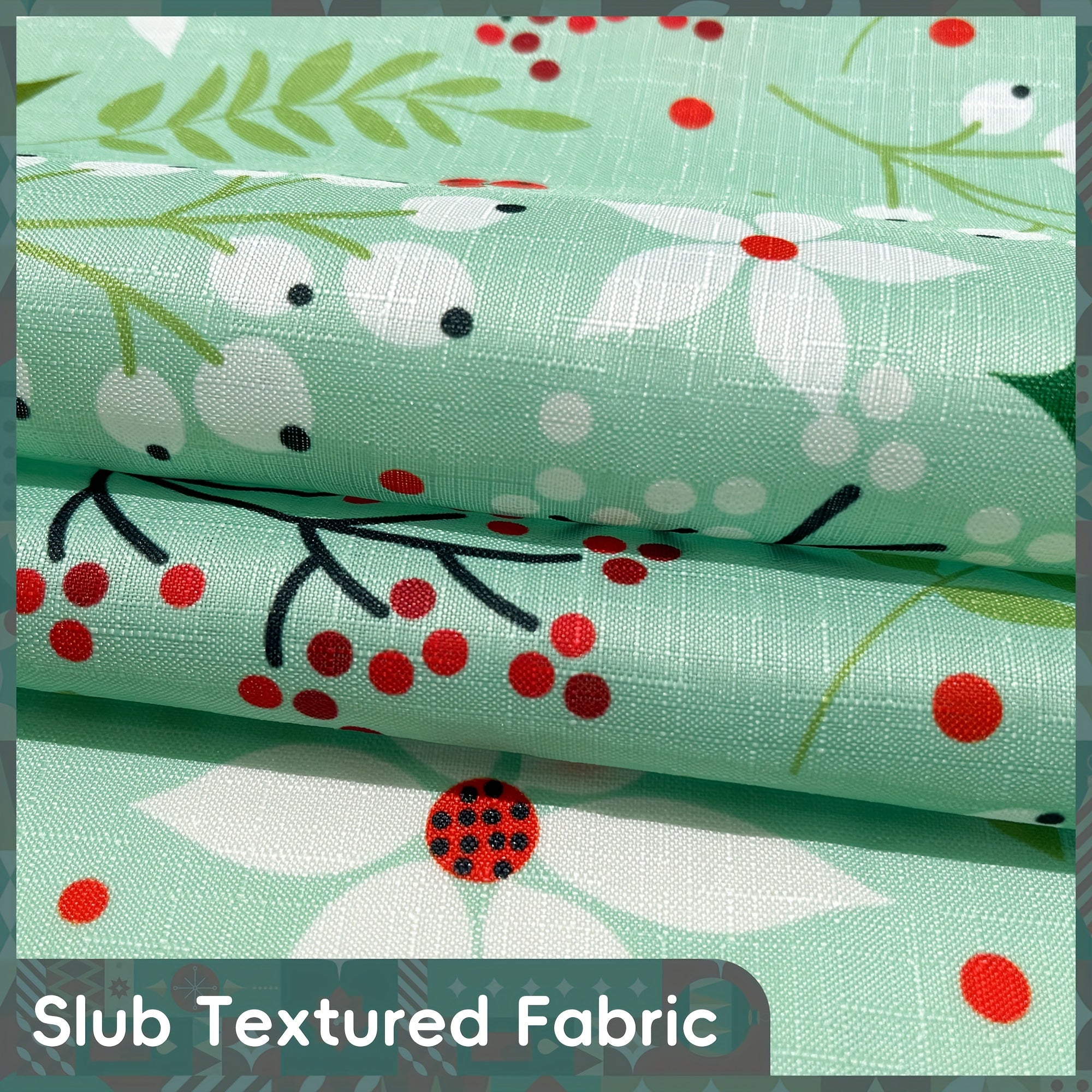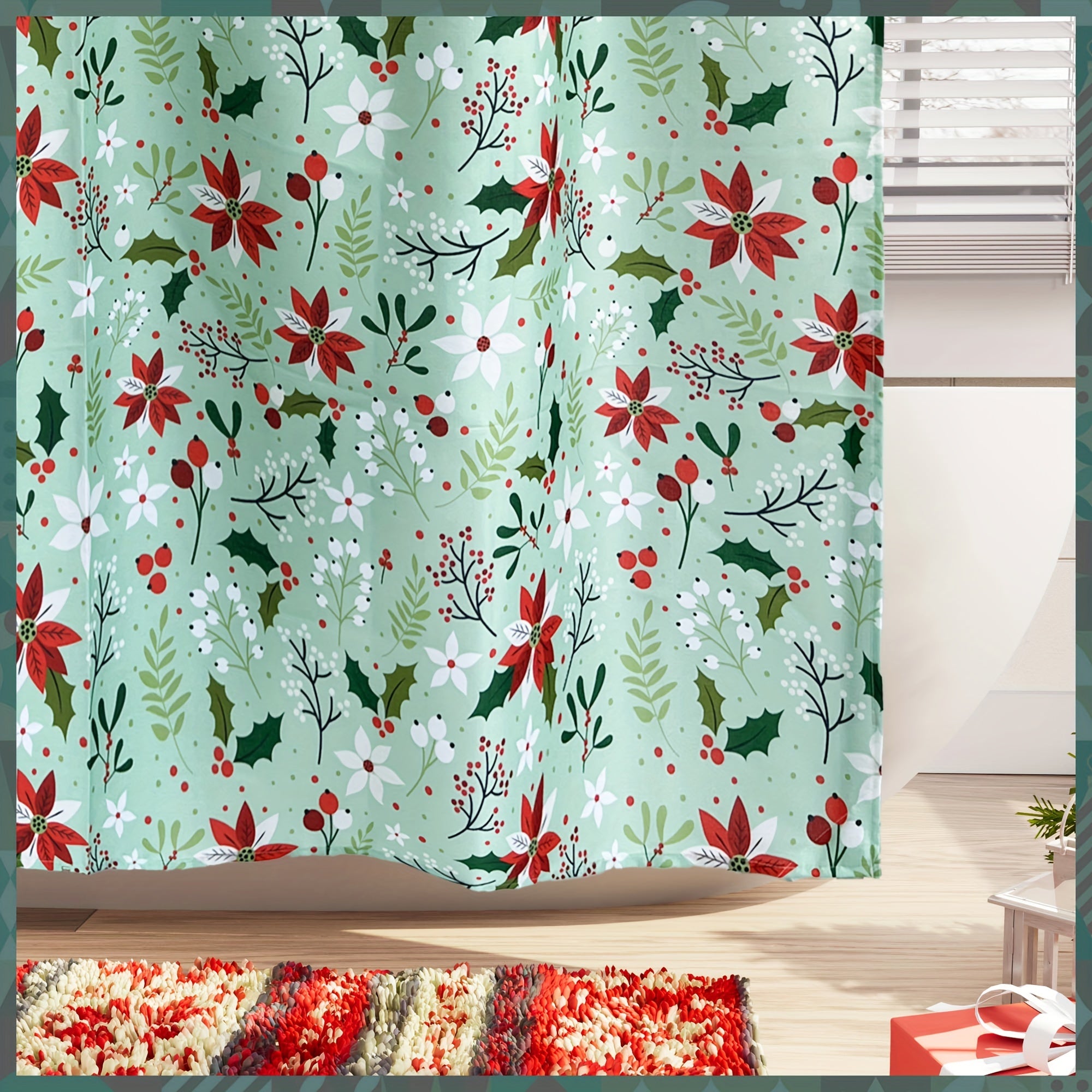 Christmas Flower Print Shower Curtain, Slub Textured Fabric Green Shower Curtains, Winter Holiday Bathroom Decor, Water Repellent, 72"×72"