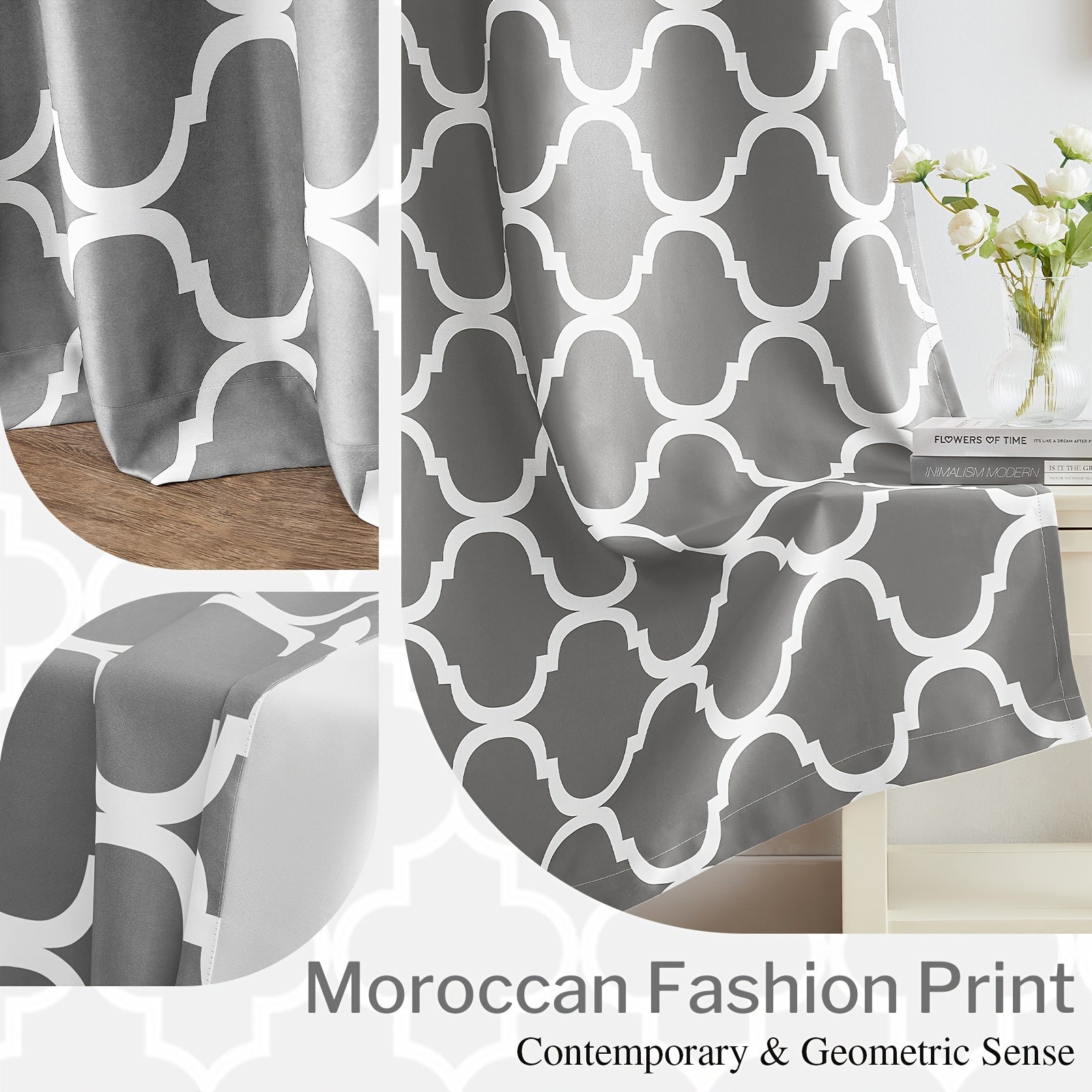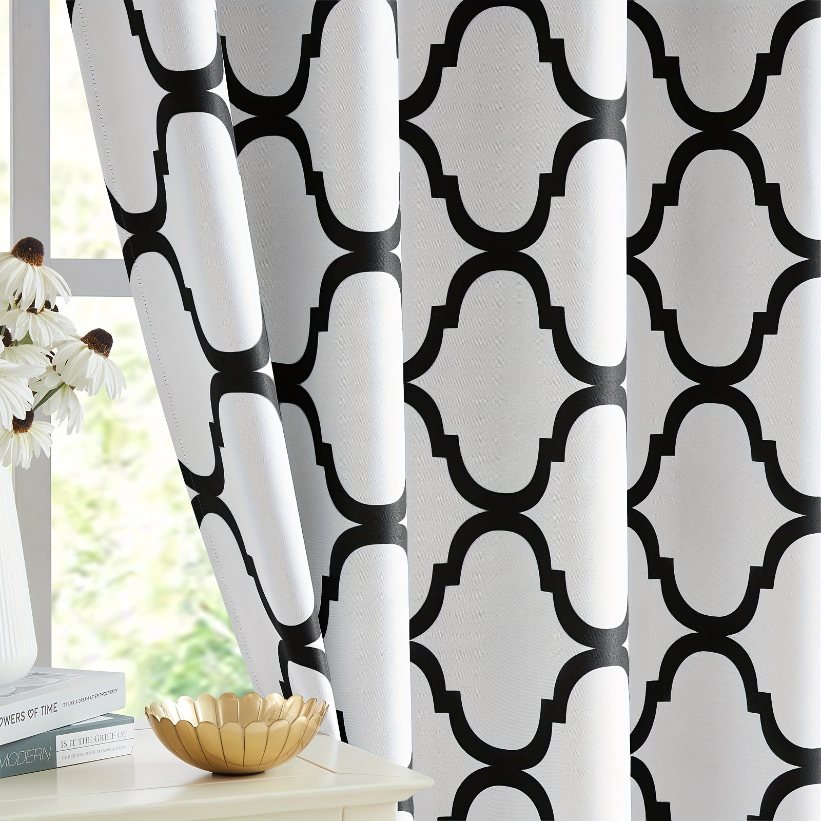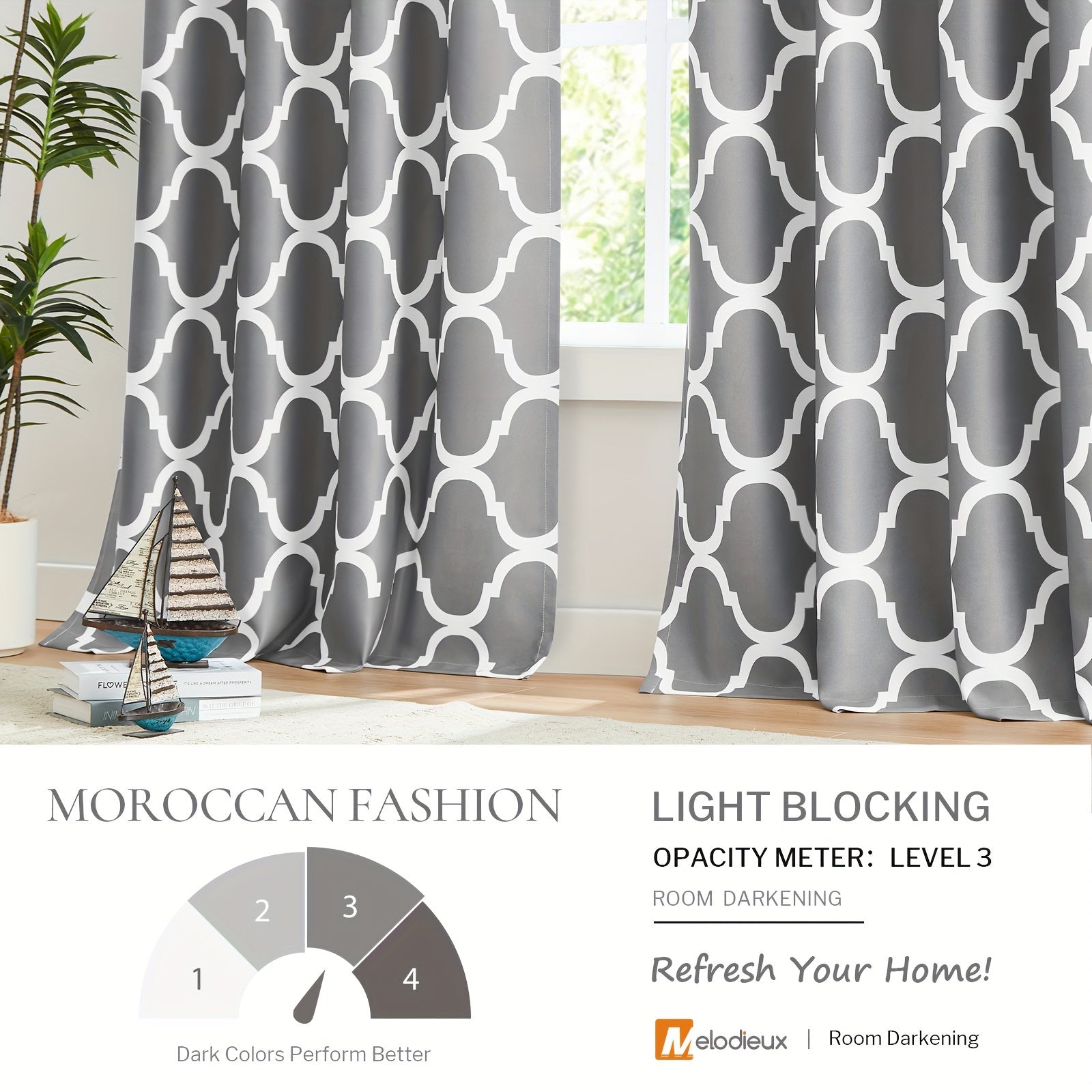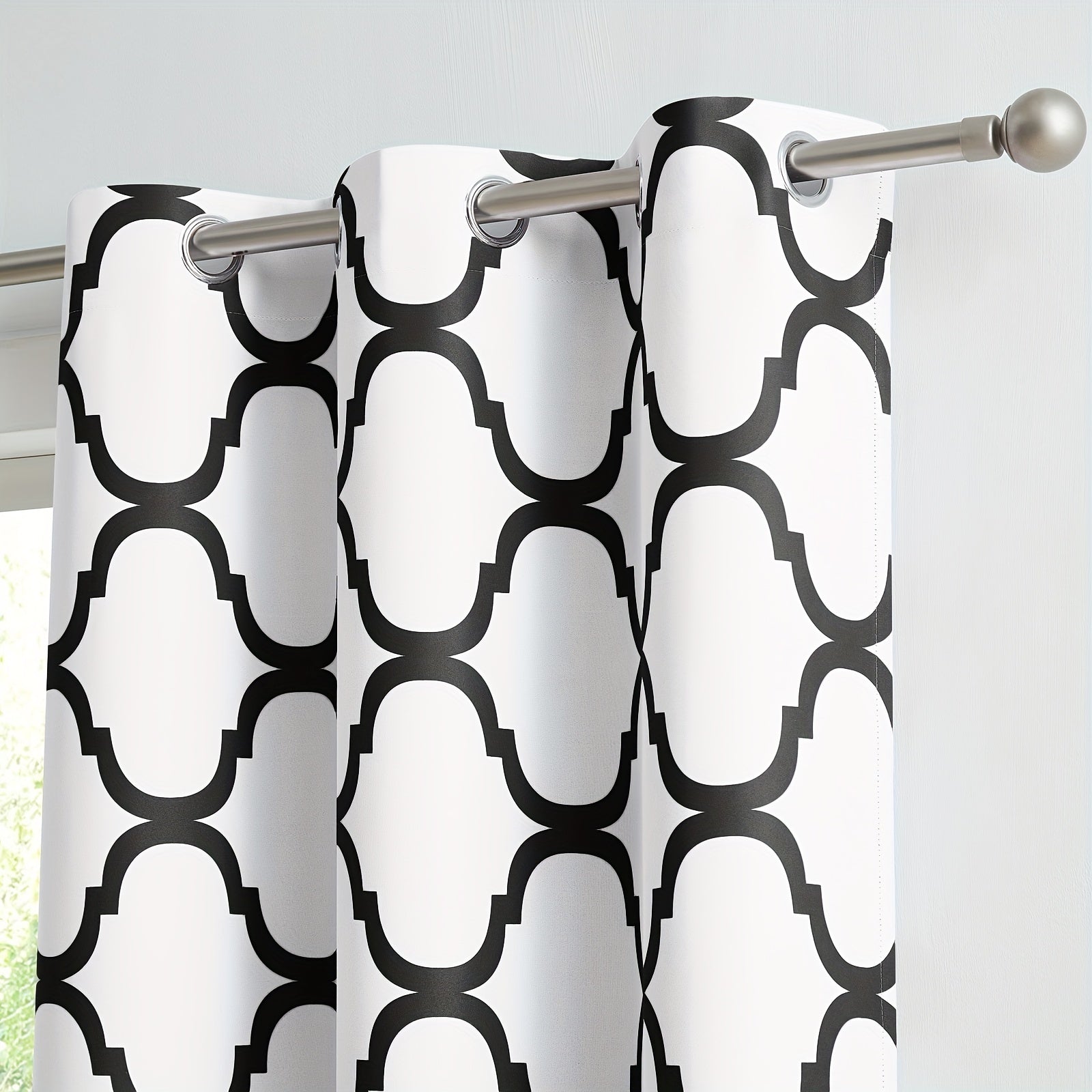 1pc Moroccan Pattern Thermal Insulated Grommet Curtains, Room Darkening Drapes for Living Room, Home Decor