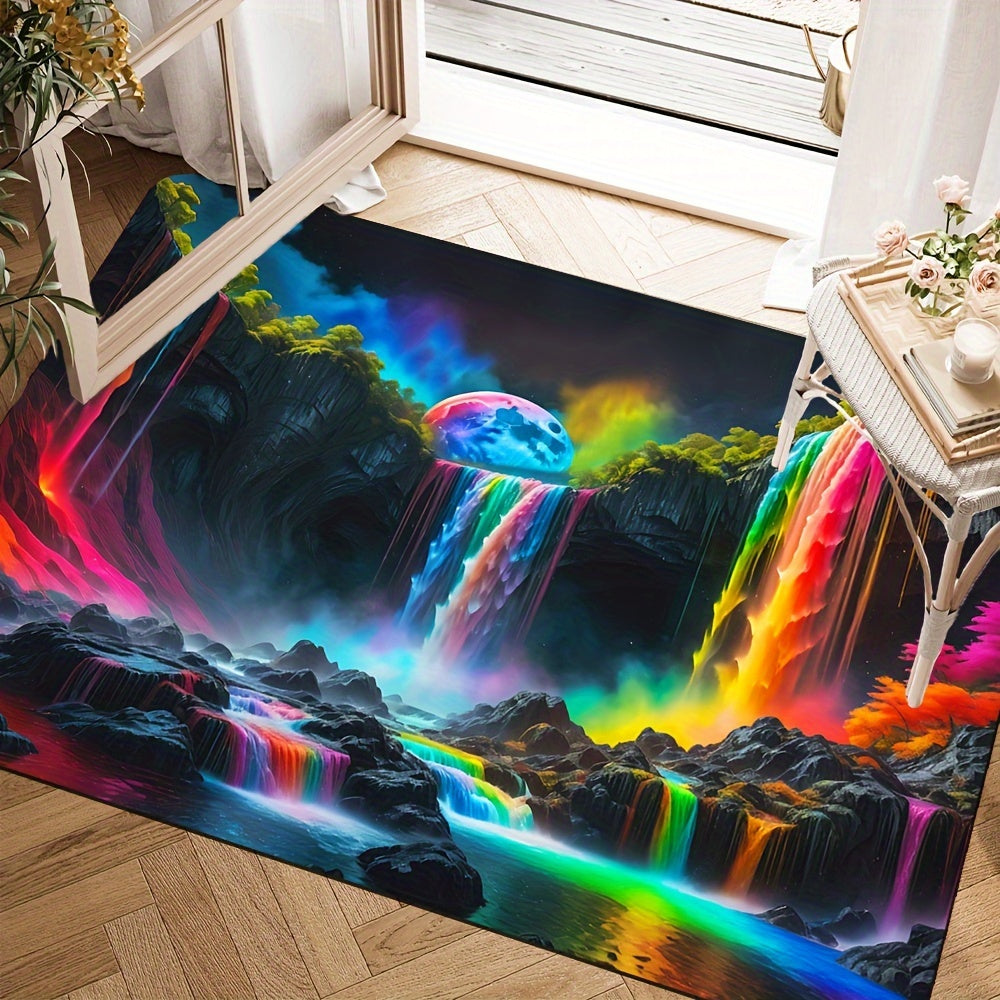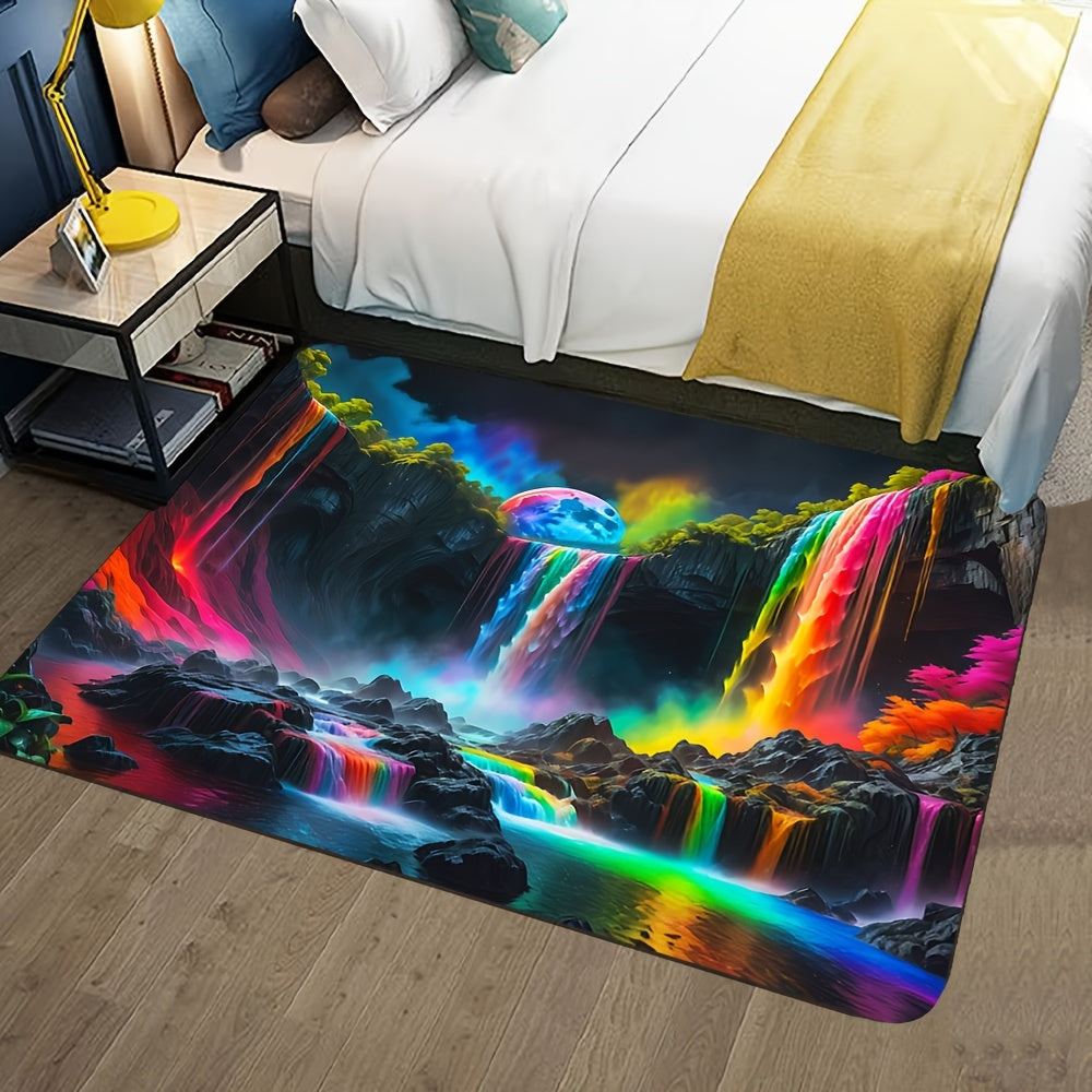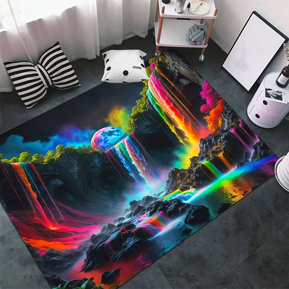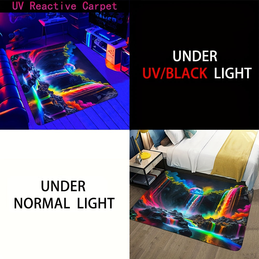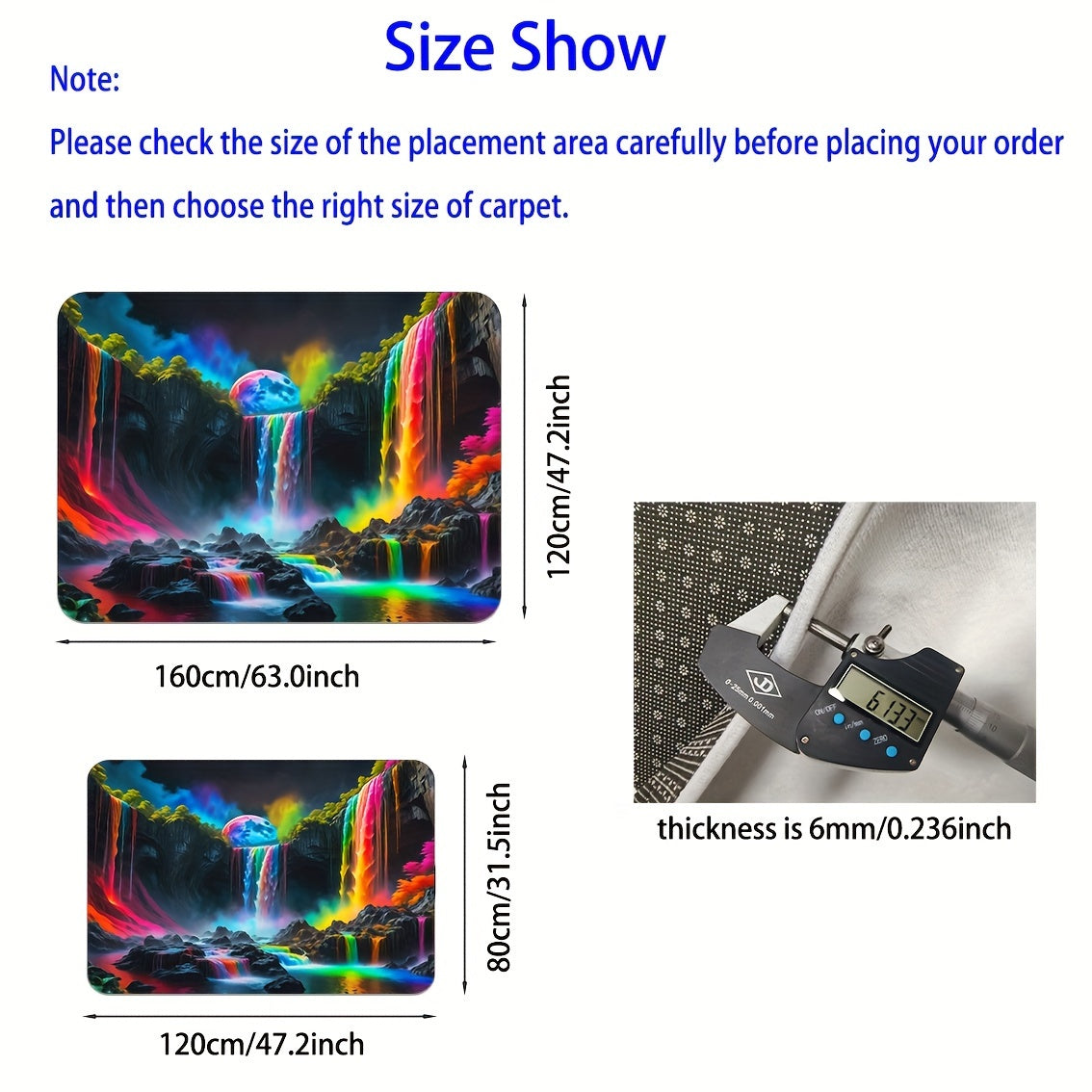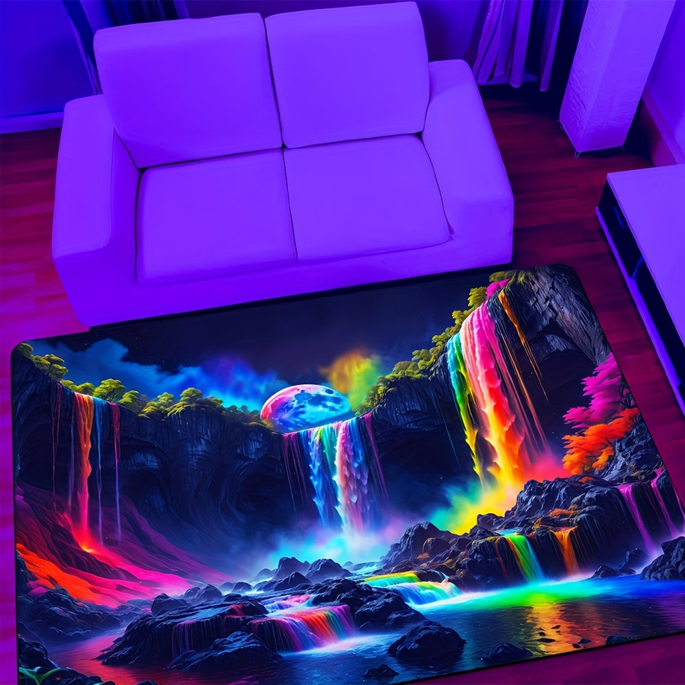 1PC Soft And Comfortable Vibrant Waterfall Design Area Rug - Non-Slip, UV Blacklight Washable Polyester Mat For Game Room, Bedroom, Living Room, Bathroom & Entryway Decor