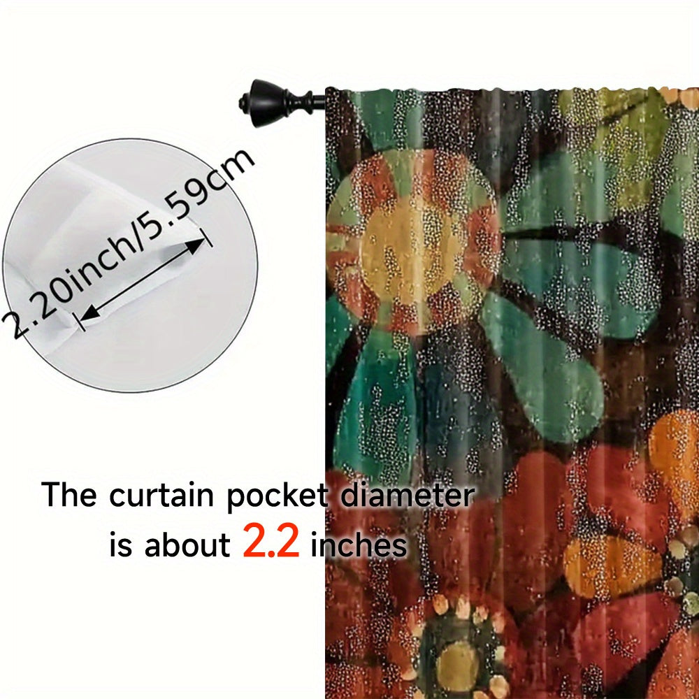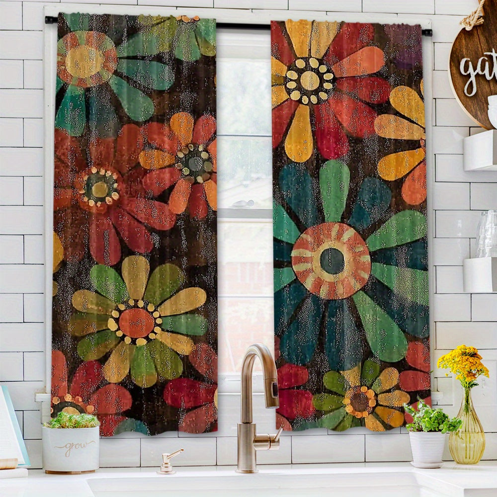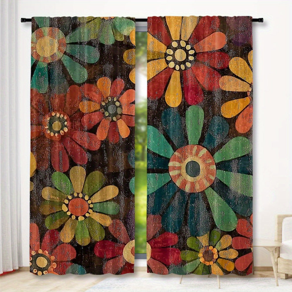 2pcs Bohemian Floral Print Curtains, Polyester Woven, Easy Install, Durable, for Bedroom, Office, Kitchen, Living Room, Study, Home Decor, Window Treatment, No Rod Included