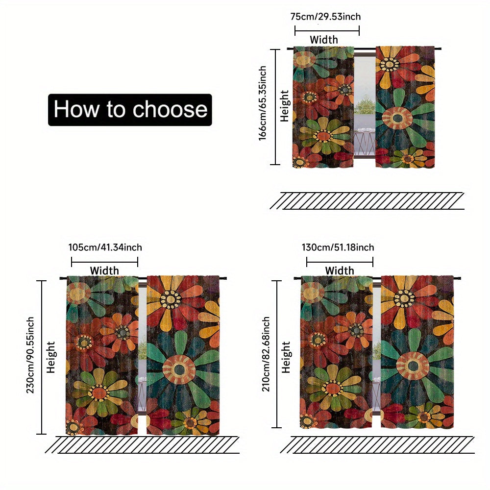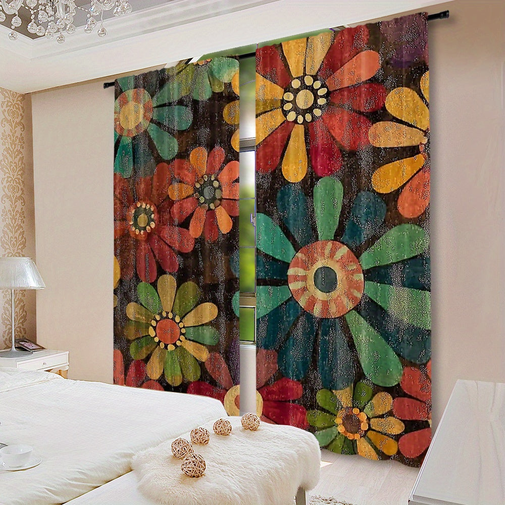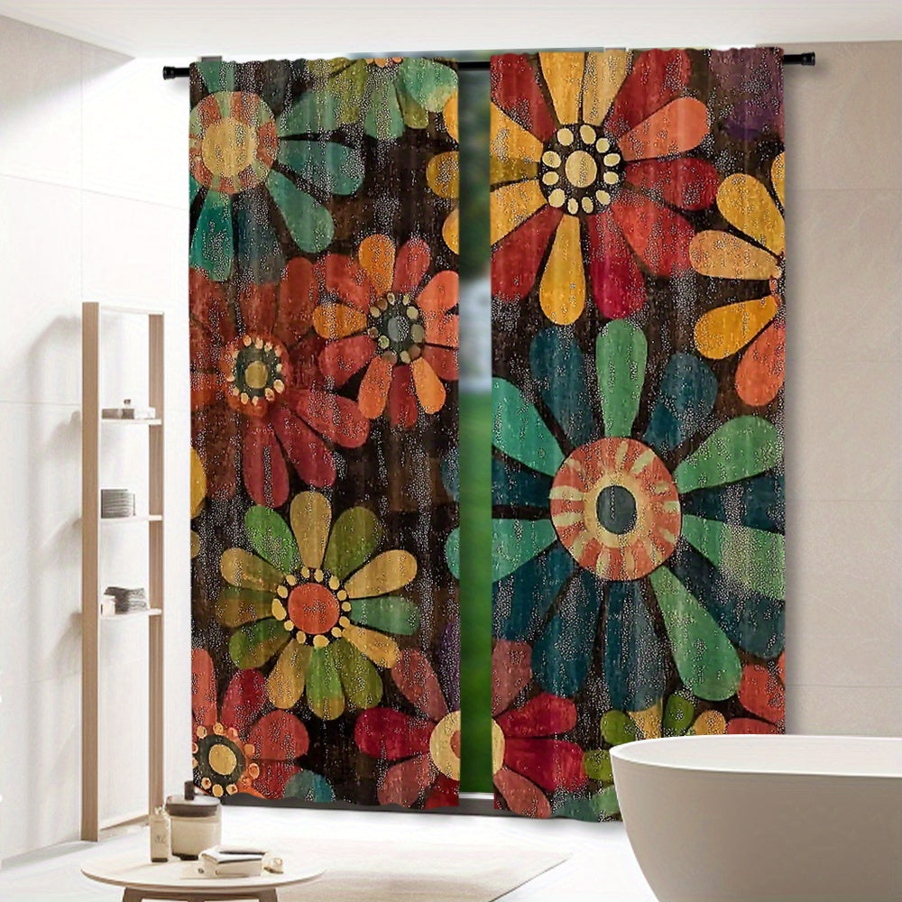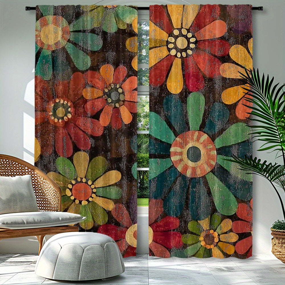 2pcs Bohemian Floral Print Curtains, Polyester Woven, Easy Install, Durable, for Bedroom, Office, Kitchen, Living Room, Study, Home Decor, Window Treatment, No Rod Included