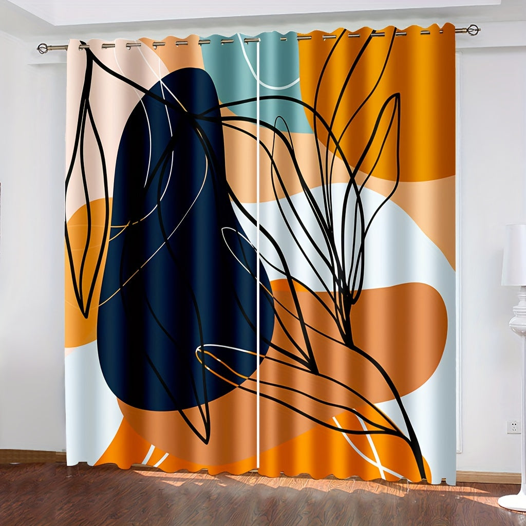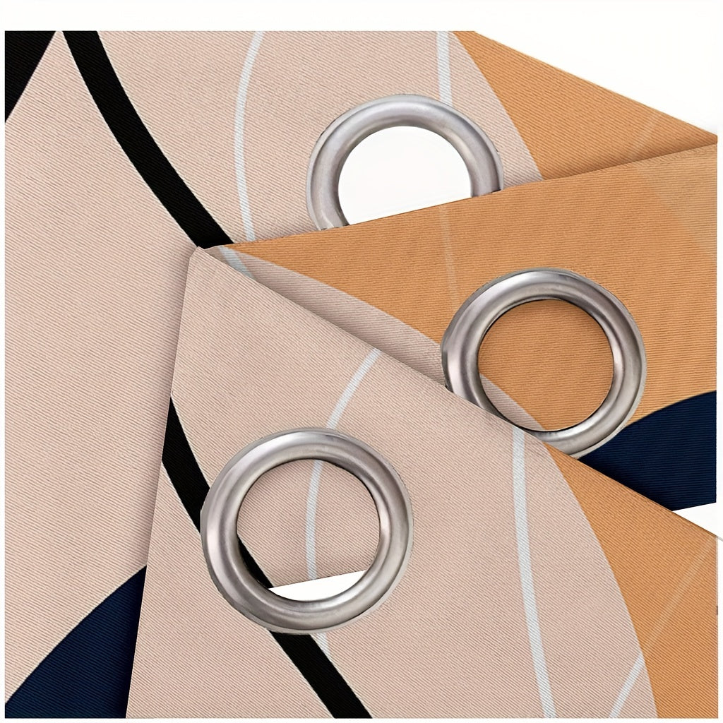 2pcs Bohemian Window Curtains Orange Window Curtains, Abstract Geometric Aesthetic Noise Reduction Curtains, Curtains For Bedroom Living Room Office Home Decor