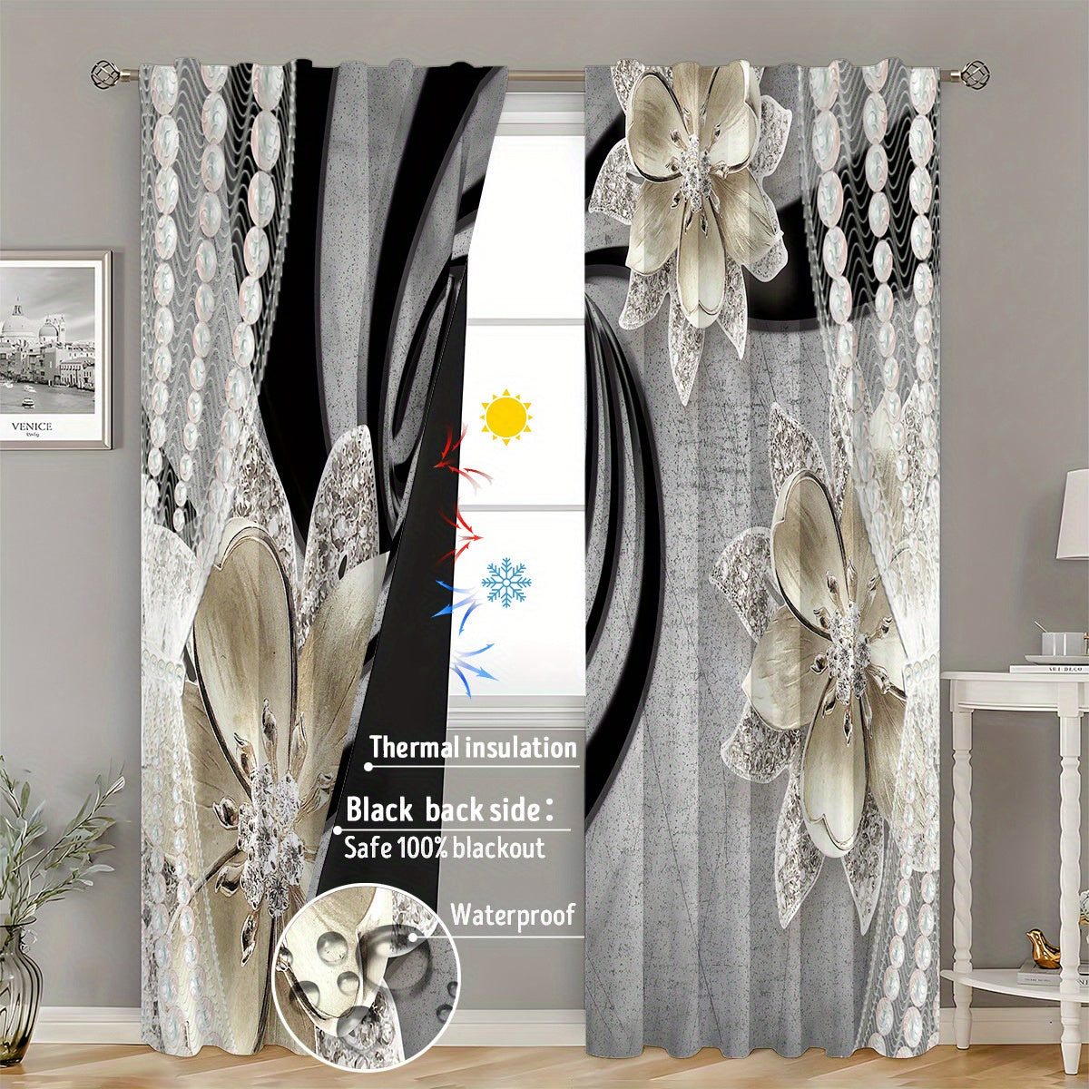 2pcs Fully Blackout waterproof 3D Printed Curtain, Rod Pocket Window Treatment For Bedroom Office Kitchen Living Room Study Home Decor, Room Decoration Aesthetic Curtain