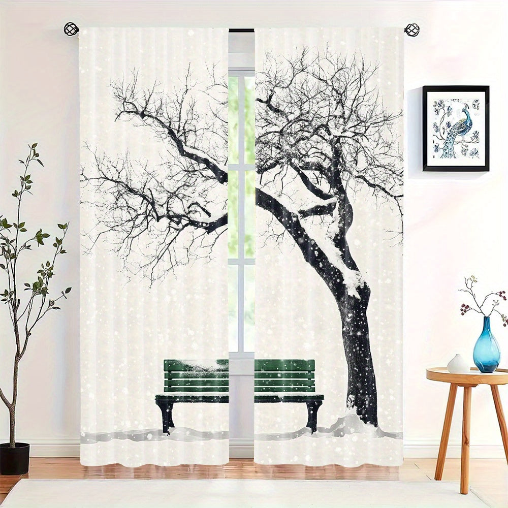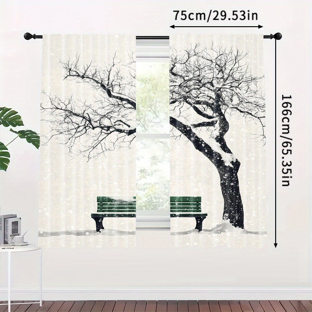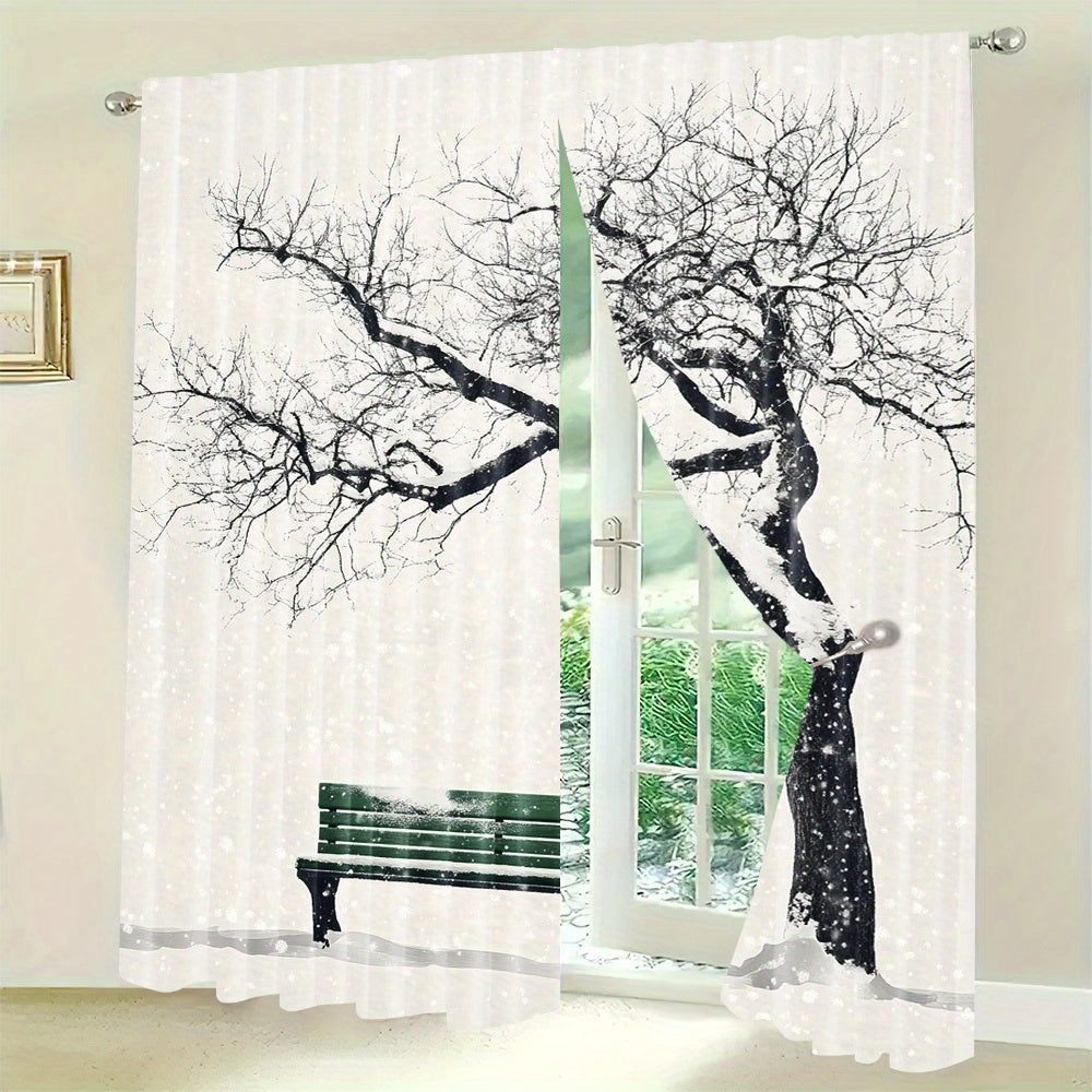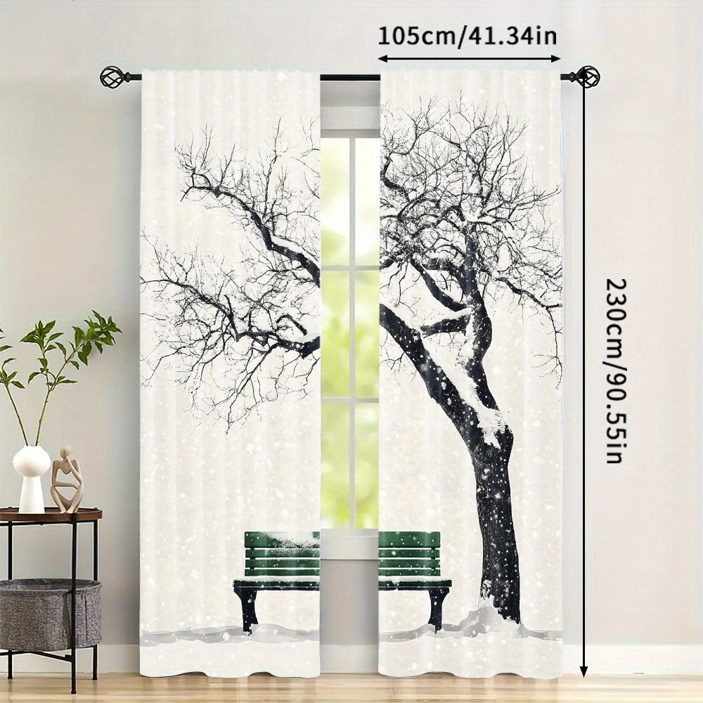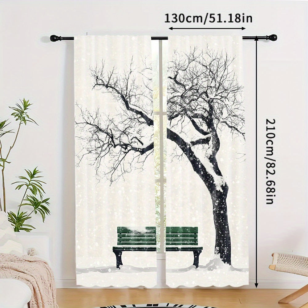 2pcs Set Christmas Tree Curtains - High-Definition Digital Print, Rod Pocket Design for Living Room & Bedroom Decor, Perfect for Holiday Home Ambiance (Rod Not Included)