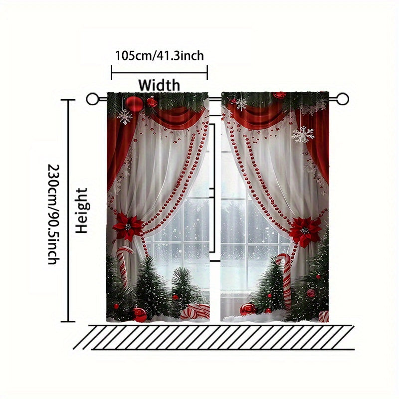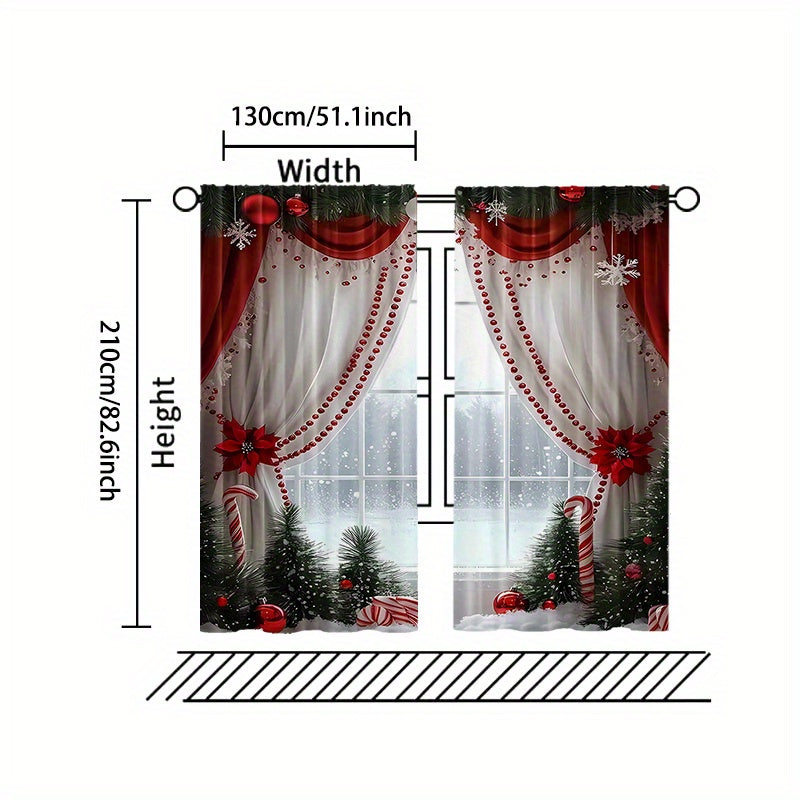 2pcs Set Luxury European Christmas Curtains with Green Plant Design - Semi Transparent, Easy Hang Rod Pocket Drapes for Living Room, Bedroom, Office - Perfect for Holiday Home Decor