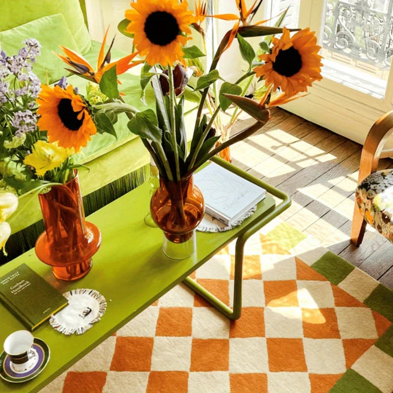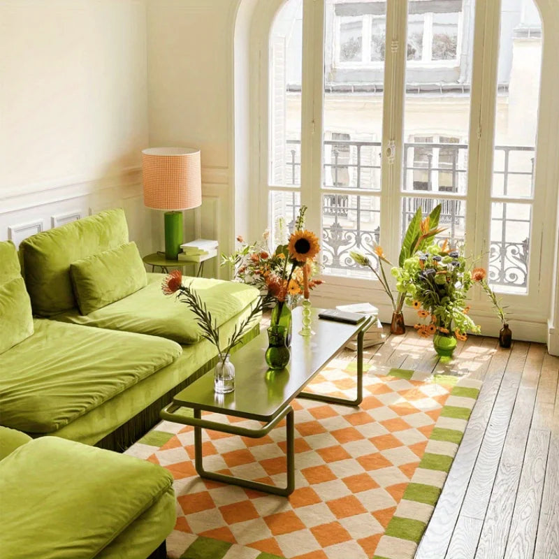 Checkered Area Rug Living Room Non-slip Entrance Door Mat Sofa Table Large Area Carpets Bedroom Bedside Floor Mat Home Decor Rug