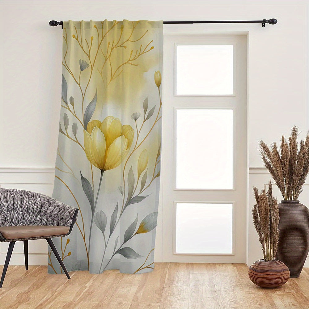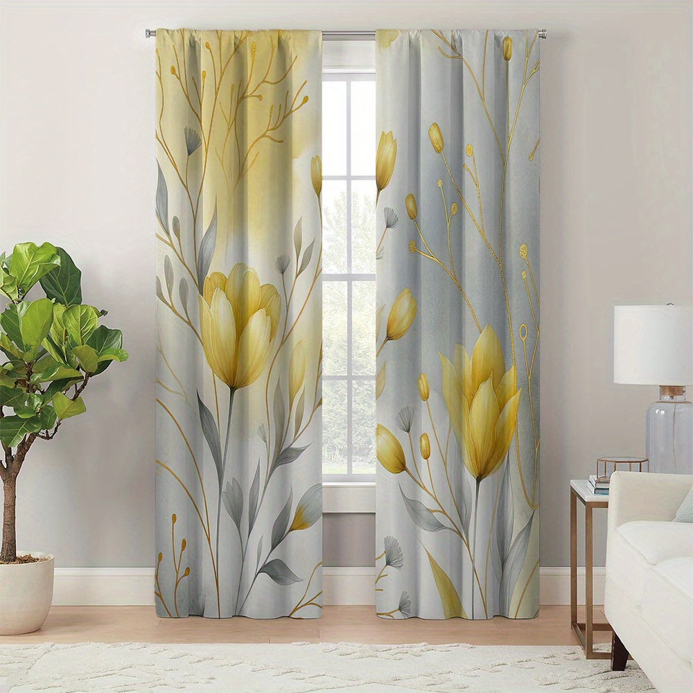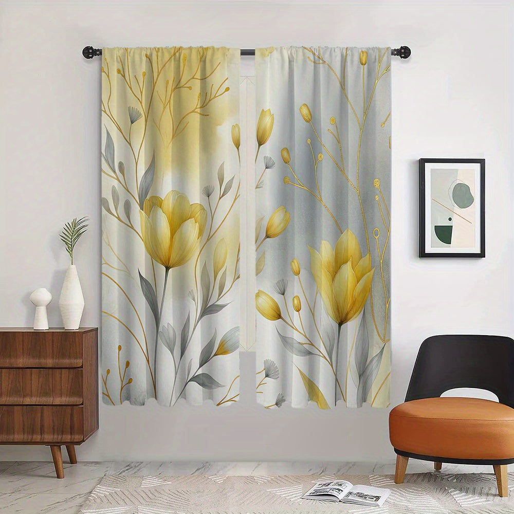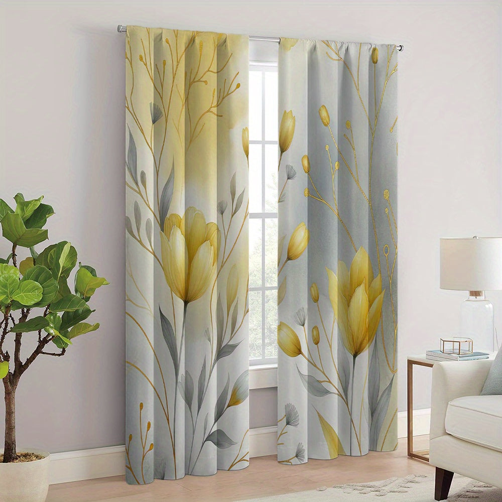 Classic Floral Knit Polyester Curtains - 2 Piece Set, Plant and Flower Printed Drapes with Tie Backs, Machine Washable, Ideal for Living Room, Elegant Home Decor Blockout Panels