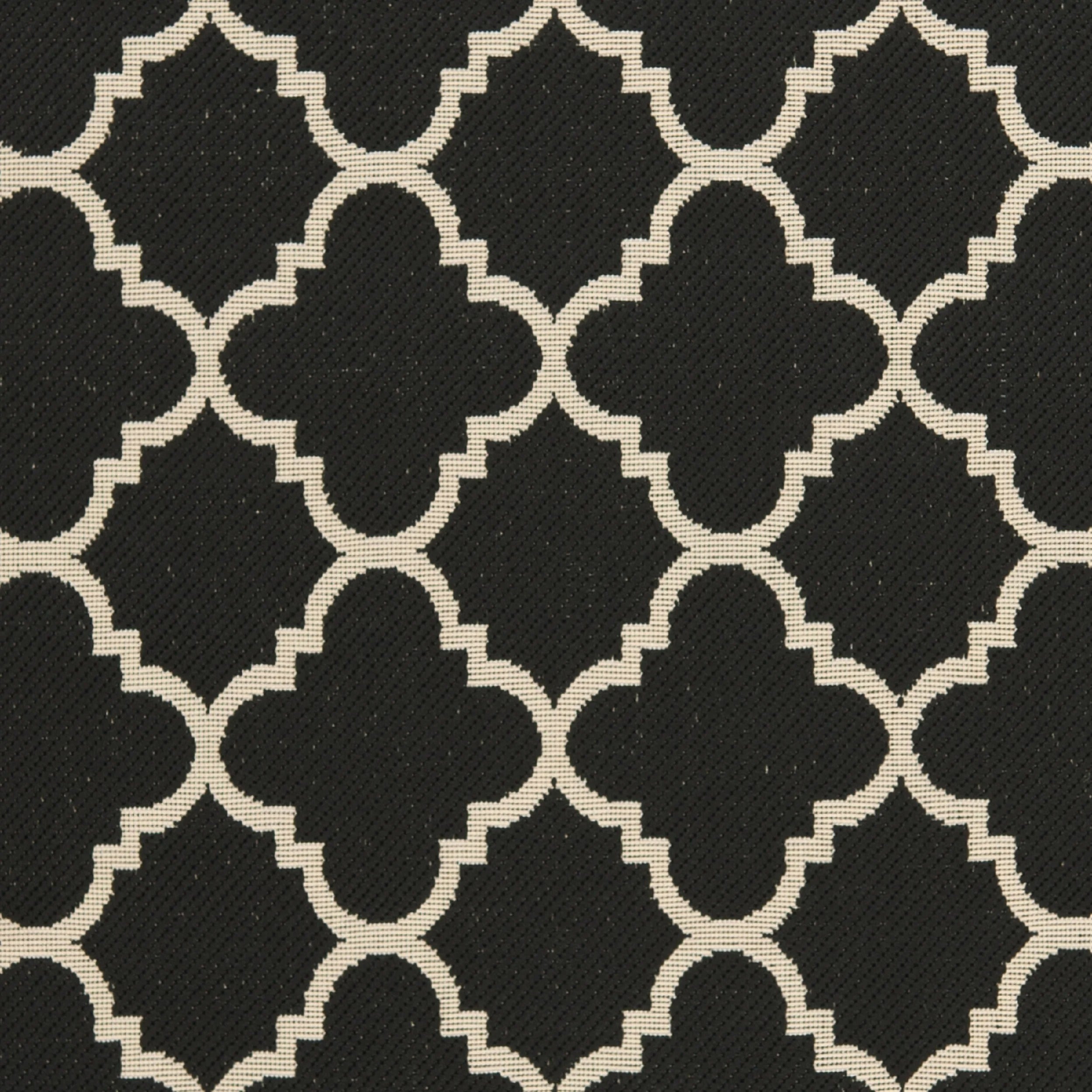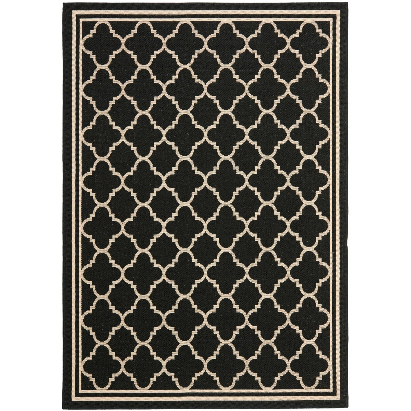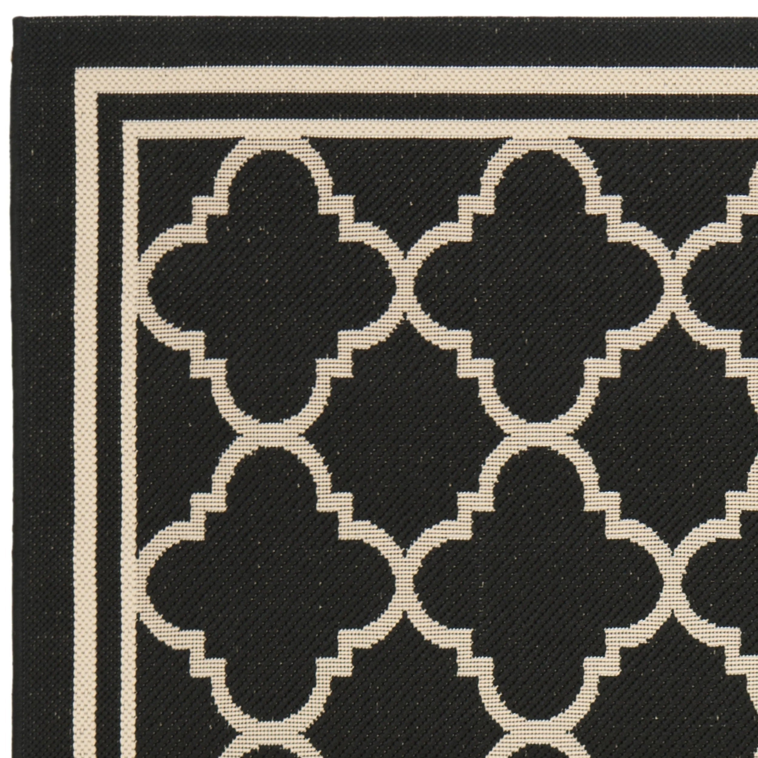 Courtyard Rug Collection Easy-Care All-Weather Carpets Safavieh’s Courtyard collection was created for today’s indoor/outdoor lifestyle. These beautiful but practical rugs take outdoor decorating to the next level with new designs in fashion-forward colors, and patterns from classic to contemporary. Made with enhanced material for extra durability, Courtyard rugs are pre-coordinated to work together in related spaces inside or outside the home. Safavieh developed a special sisal weave that achieves intricate designs that are so easy to maintain, you simply clean your rug with a garden hose. Power Loomed in Turkey Pile Height: 0.25 in. No backing, rug pad (sold separately) recommended to avoid shifting and sliding 100% Polypropylene Water resistant making it perfect for outdoor use Accessories in lifestyle images not included Vacuum (preferably one without beater bars) regularly and spot clean; for hard-to-remove stains, professional rug cleaning is recommended; rotating your rugs every 3-6 months will protect against uneven wear from foot traffic and furniture weight Avoid direct sunlight as it will cause the colors in your area rug to fade over time; place your area rug away from direct sunlight whenever possible Use rug protectors under the legs of heavy furniture to avoid flattening piles For an instant decorating makeover, this area rug is one of the easiest and most fashionable ways to refresh a room with character and style. Please note: The images and product dimensions on our website are as accurate as possible. Due to differences in computer monitors, some rug colors may vary slightly. Lengths and widths may vary from the published dimensions. We do our best to provide you with an exact measurement, but please be advised that some variation exists. Patterns may vary slightly according to shape and size selected. Size 5'3" X 7'7" Color Black/Beige Material Polypropylene;Power Loomed Shape Rectangle Condition New