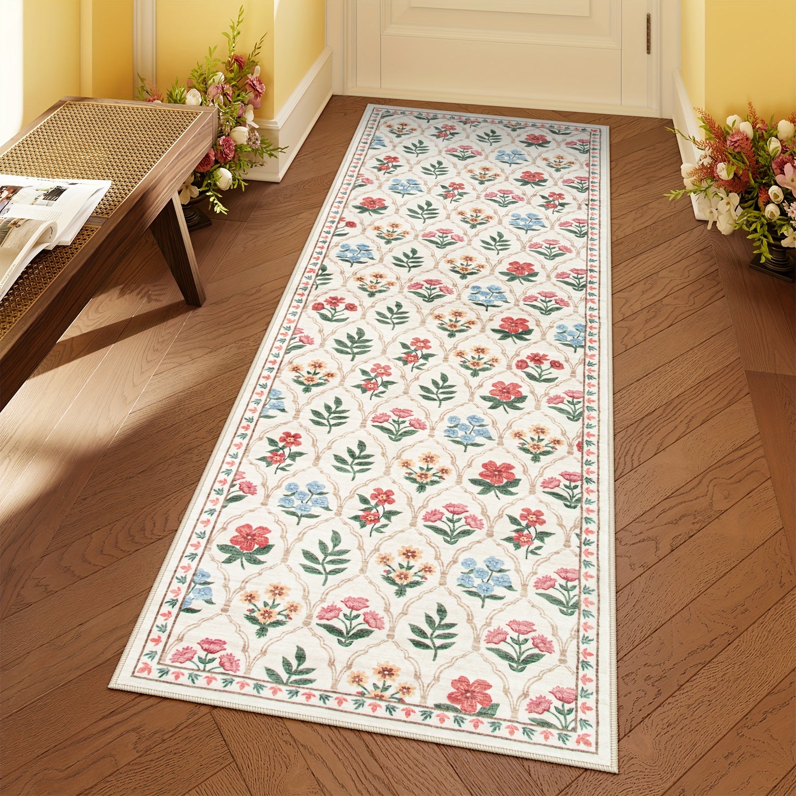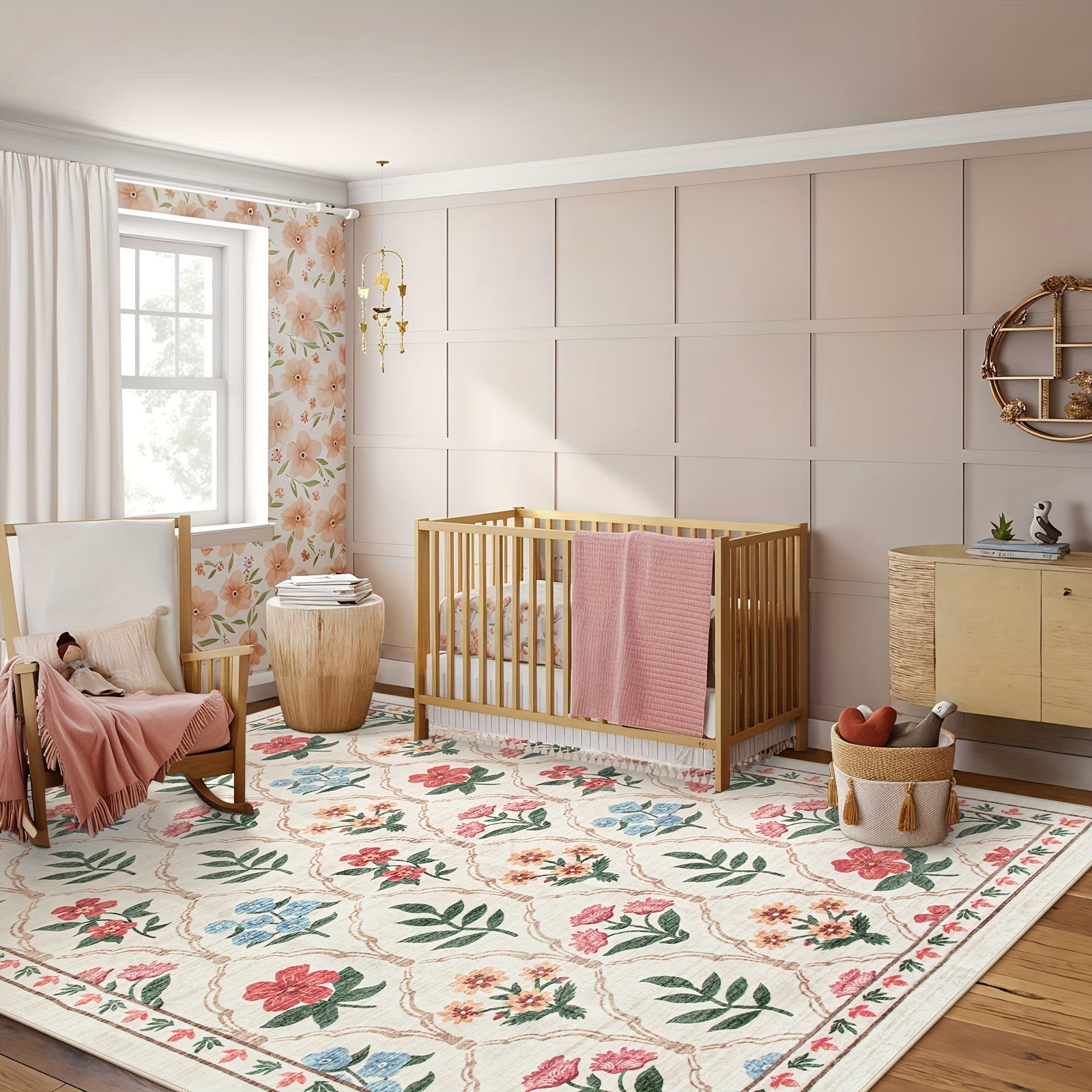 Elegant Area Rug - Stylish Non-Slip Carpet With Moroccan Flower Patterns, Washable Beige Rug Xmas Decor Throw Mat For Living Rooms, Entryways, And Kitchens