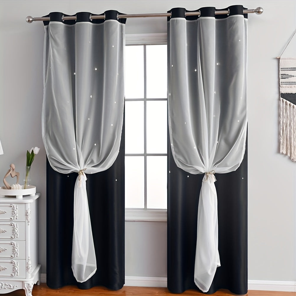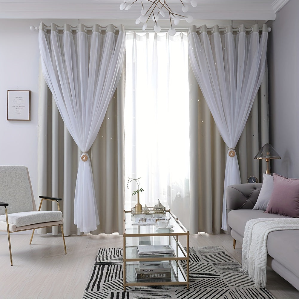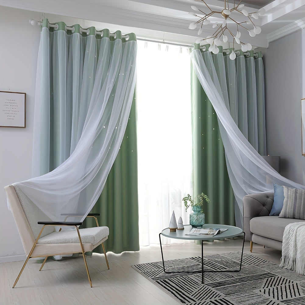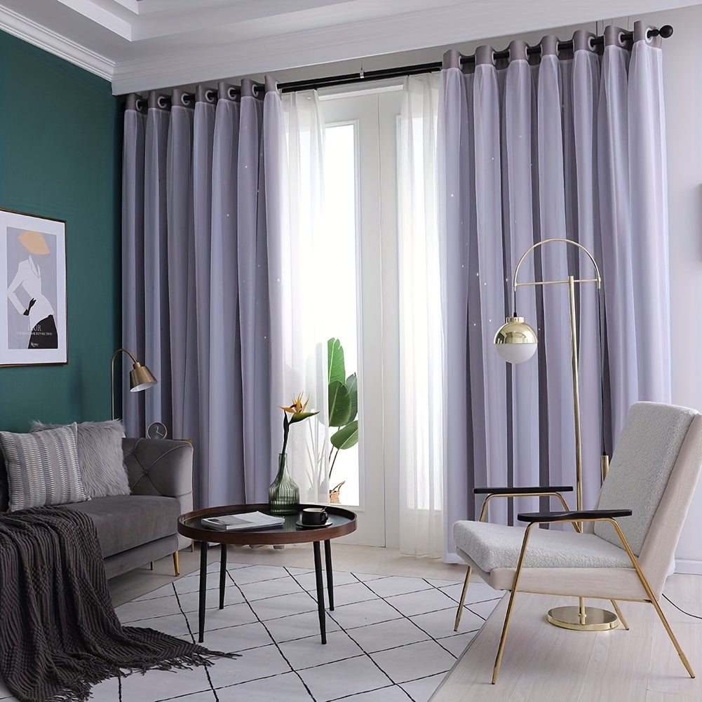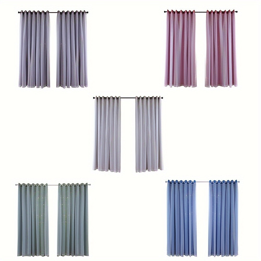 High Blackout Home Practical Durable Hollow Stars Solid Color Double Curtains