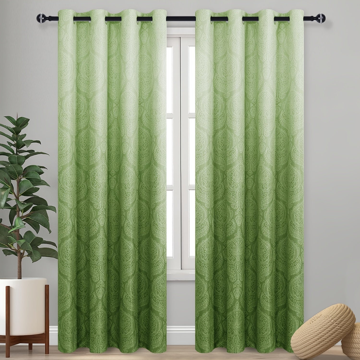 Ombre Room Darkening Blackout Curtains For Bedroom, Luxury Damask Patterned Grommet Drapes For Living Room, Set Of 2 Gradient Window Curtain Panels Christmas decor