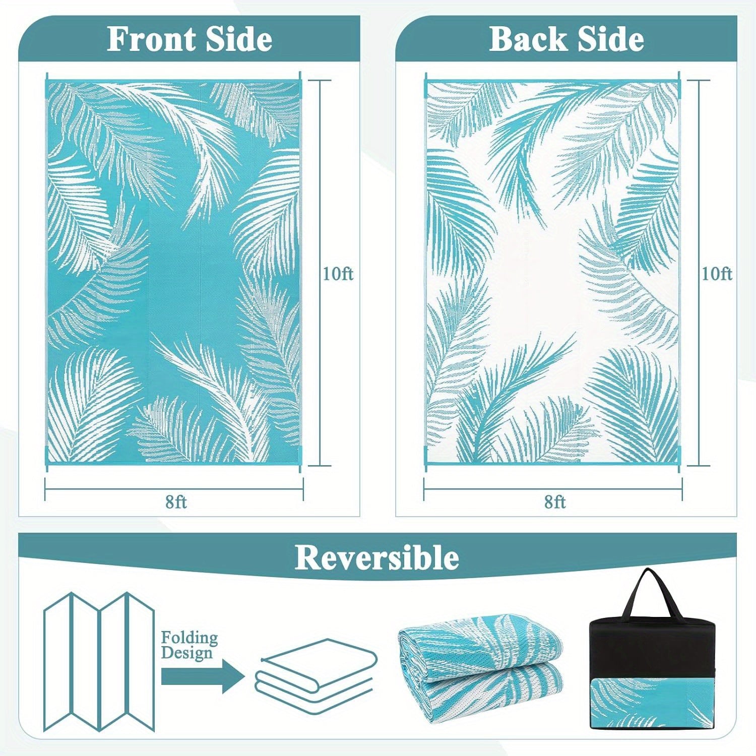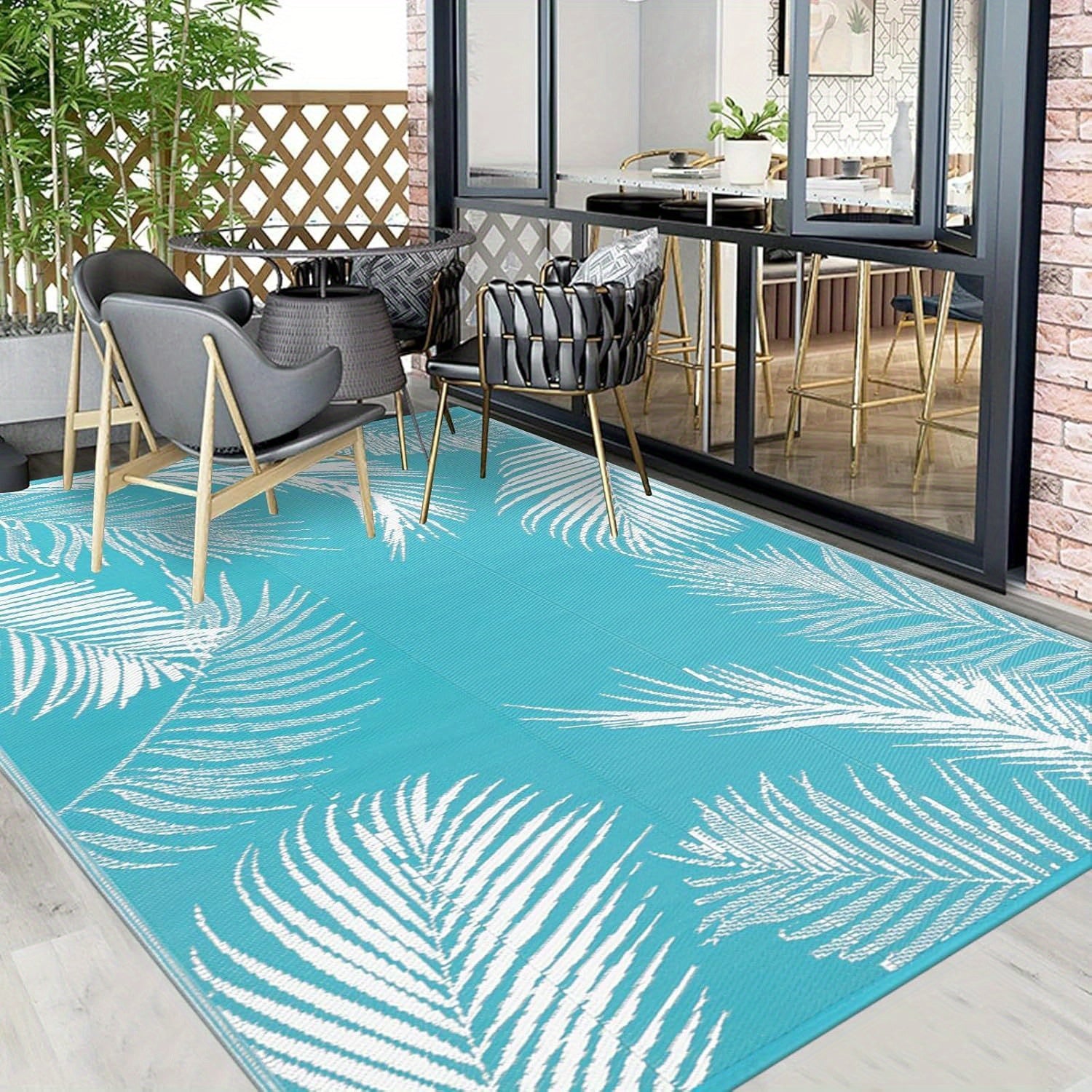 Waterproof Reversible Outdoor Rug - Durable Plastic Straw Construction, Perfect for Patio, RV, Picnic, Backyard, Deck, Balcony, Porch, Camping, and Indoor Outdoor Area Rugs Carpet