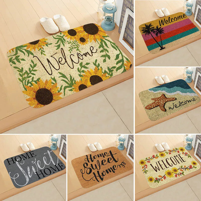 Welcome Doormat Beach Starfish Pattern Anti-Slip Door Mat Carpet Doormat Flannel Outdoor Kitchen Living Room Floor Mat Rug