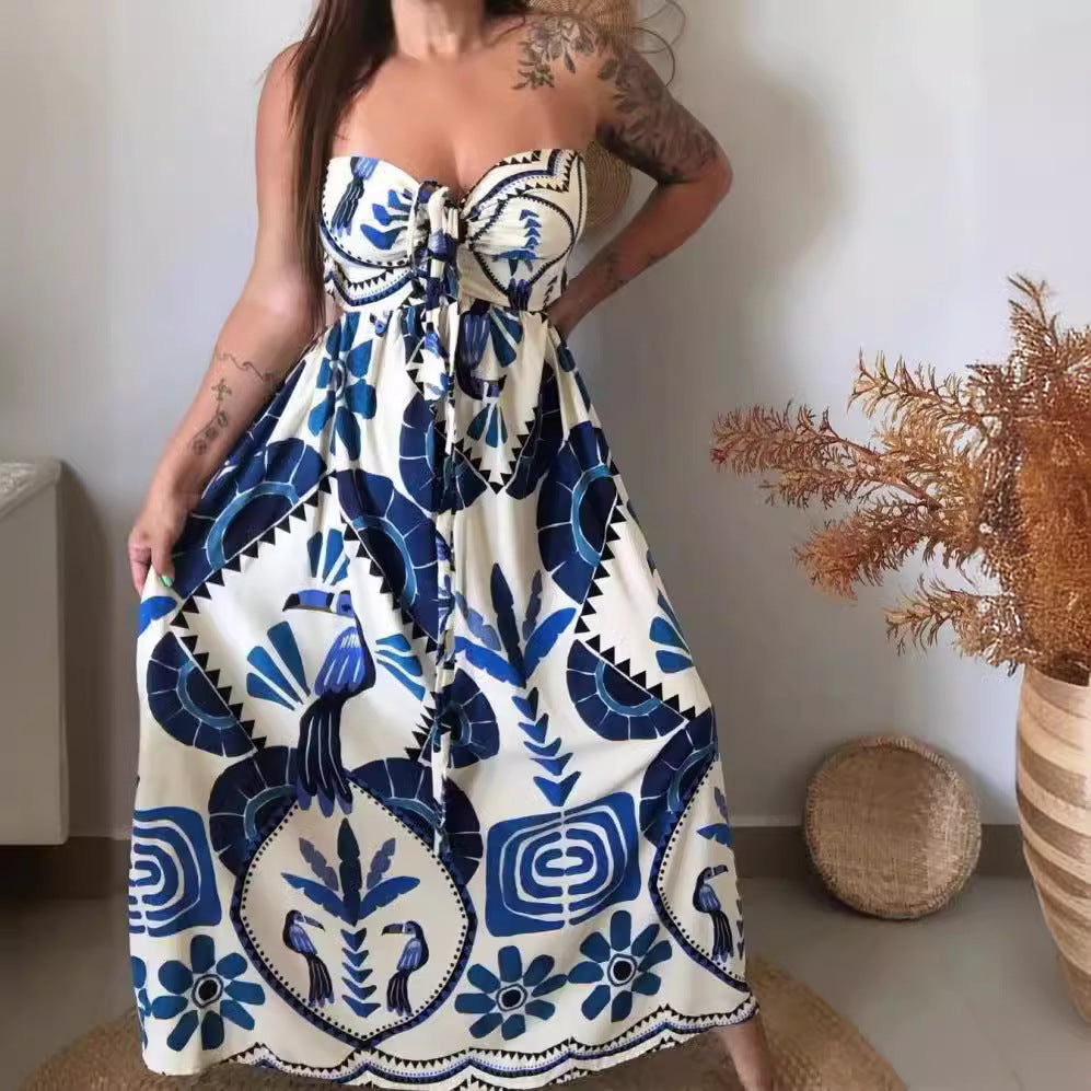 Ins European And American Spring And Summer Print Lace Printing Elegant Style Dress