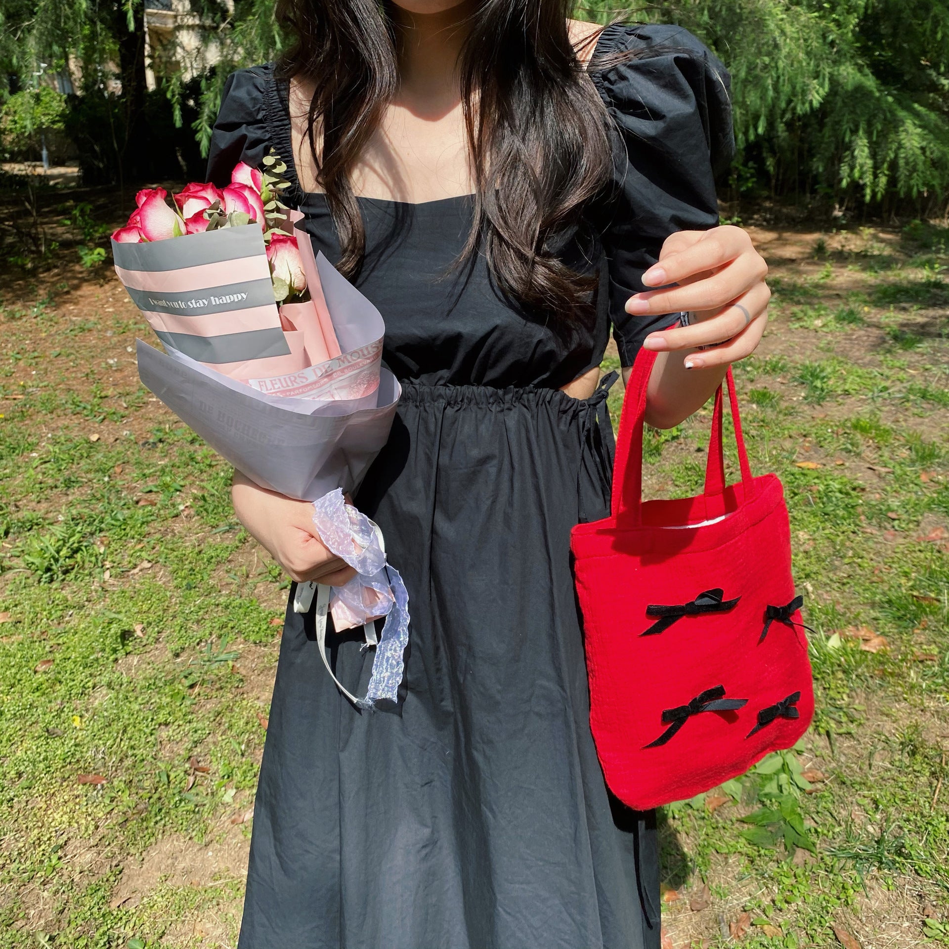 Color: Rose red bucket with black bow, Rose red bucket with white bow, red bucket with black bow, red bucket with white bow