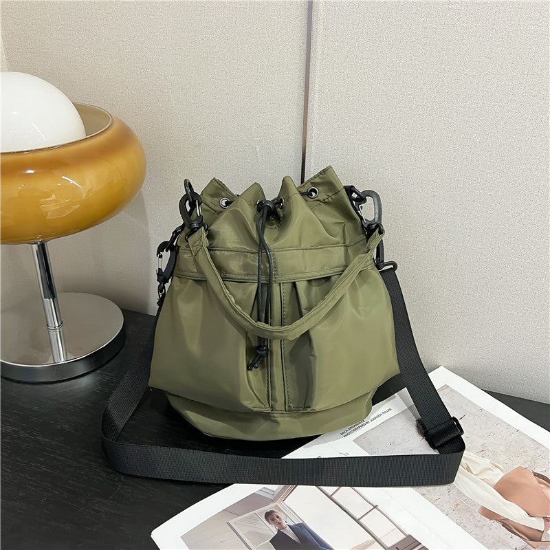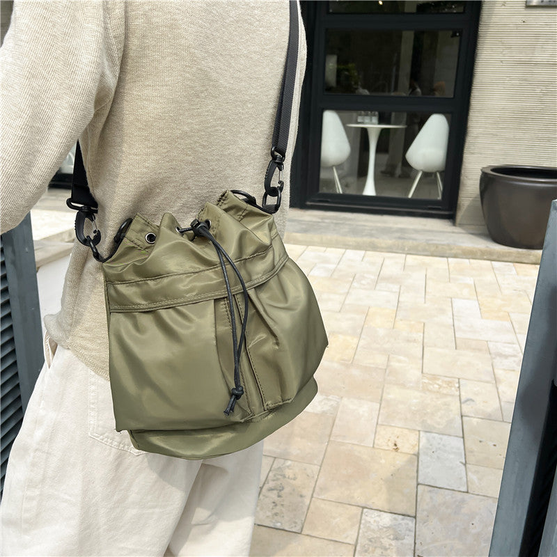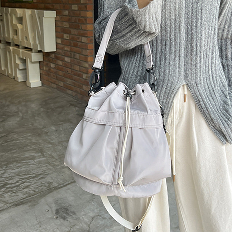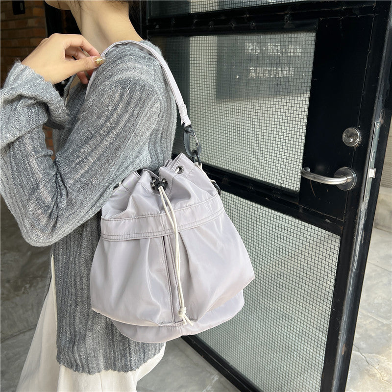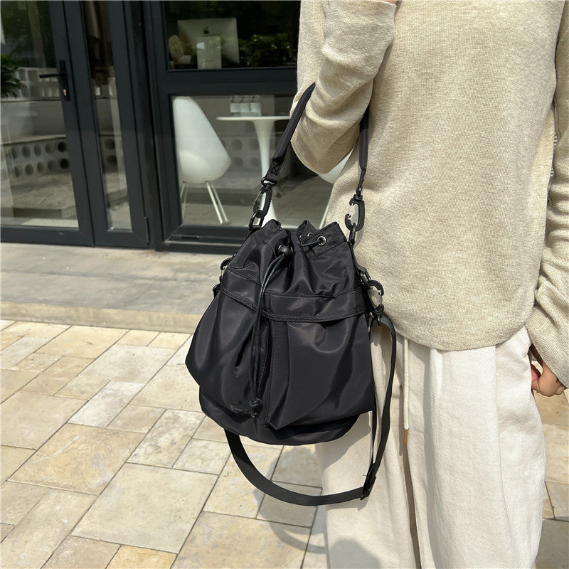 Waterproof Nylon Cloth Drawstring Bucket Bag Large Capacity
