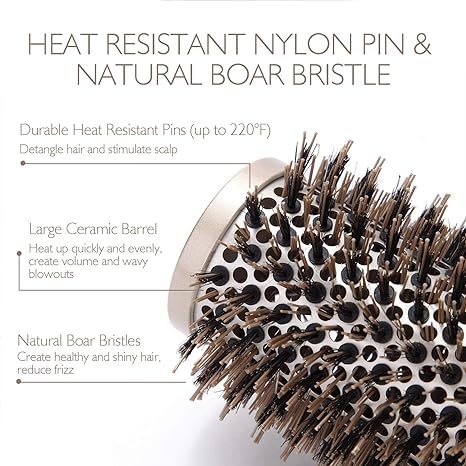 • Multiple Uses: This round barrel brush with boar bristles can not only comb your hair and massage your scalp during use, but also help you remove excess oil, improve hair quality, and make your hair healthy and comfortable.
