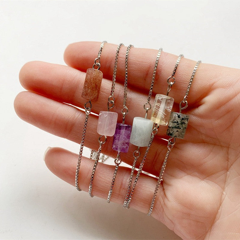 Natural Citrine Purple Prehnite Tube Bead Bracelet