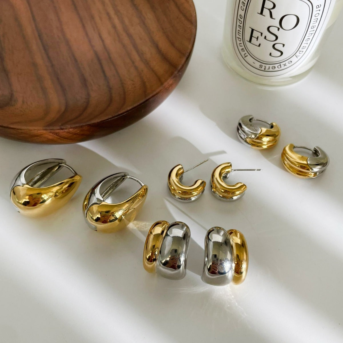 Color: glossy water drop contrast color ear clip, double color contrast color ear clip, C- shaped irregular contrast color ear studs, C- shaped contrast color ear studs