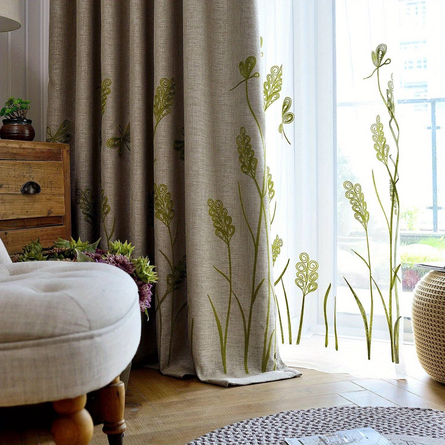 1 panel Wheat Embroidery Grommet Linen Curtains Room Darkening Noise Reducing Curtain for Bedroom