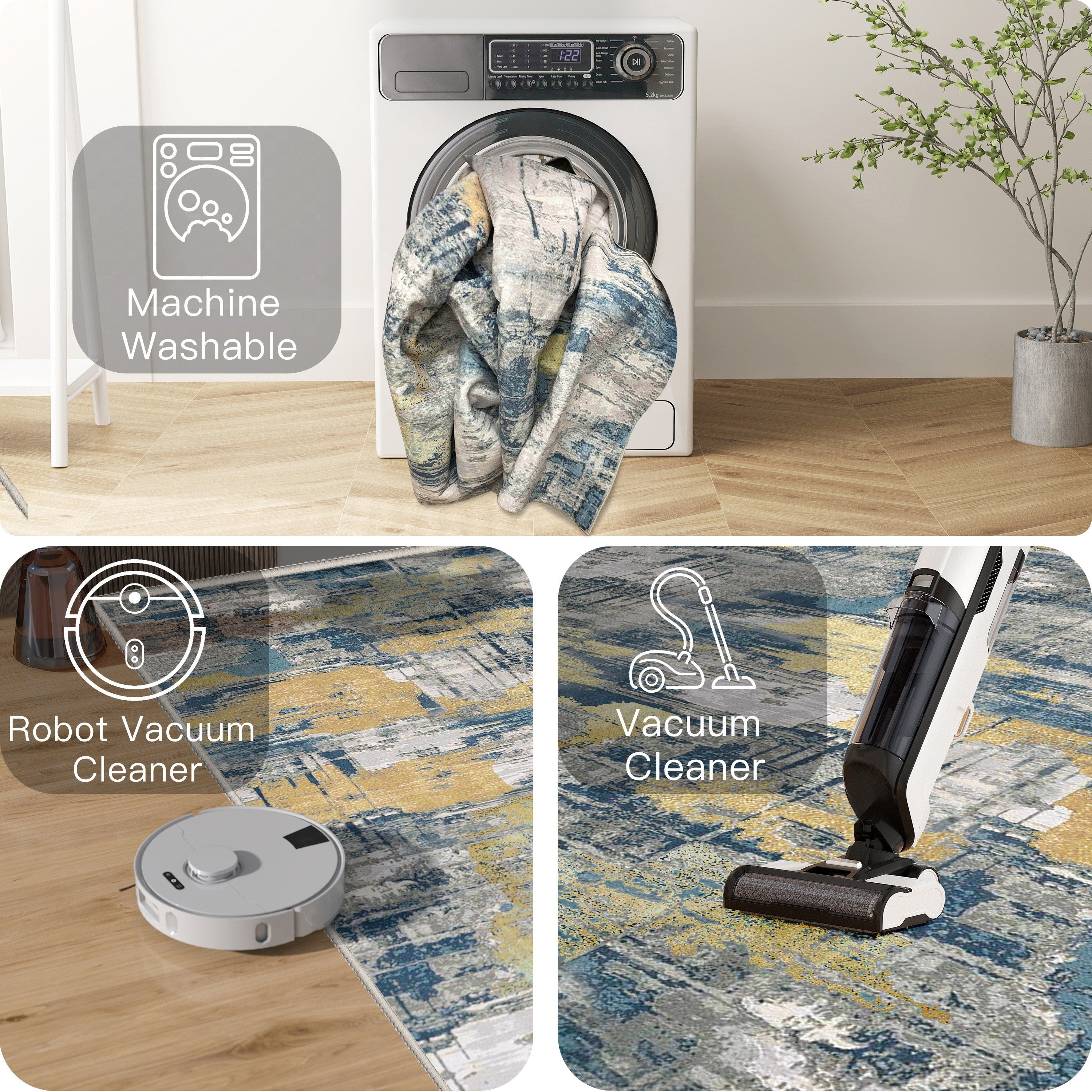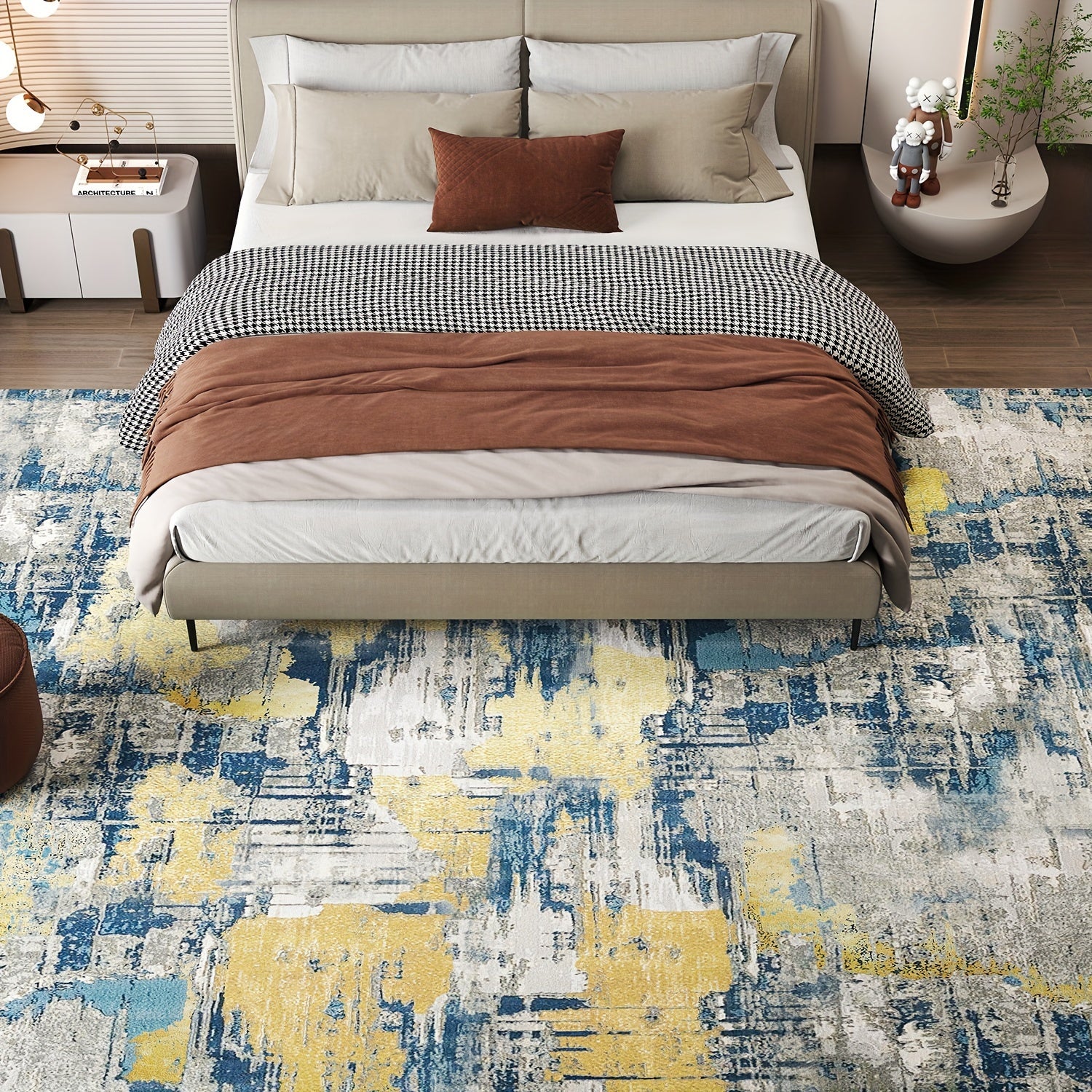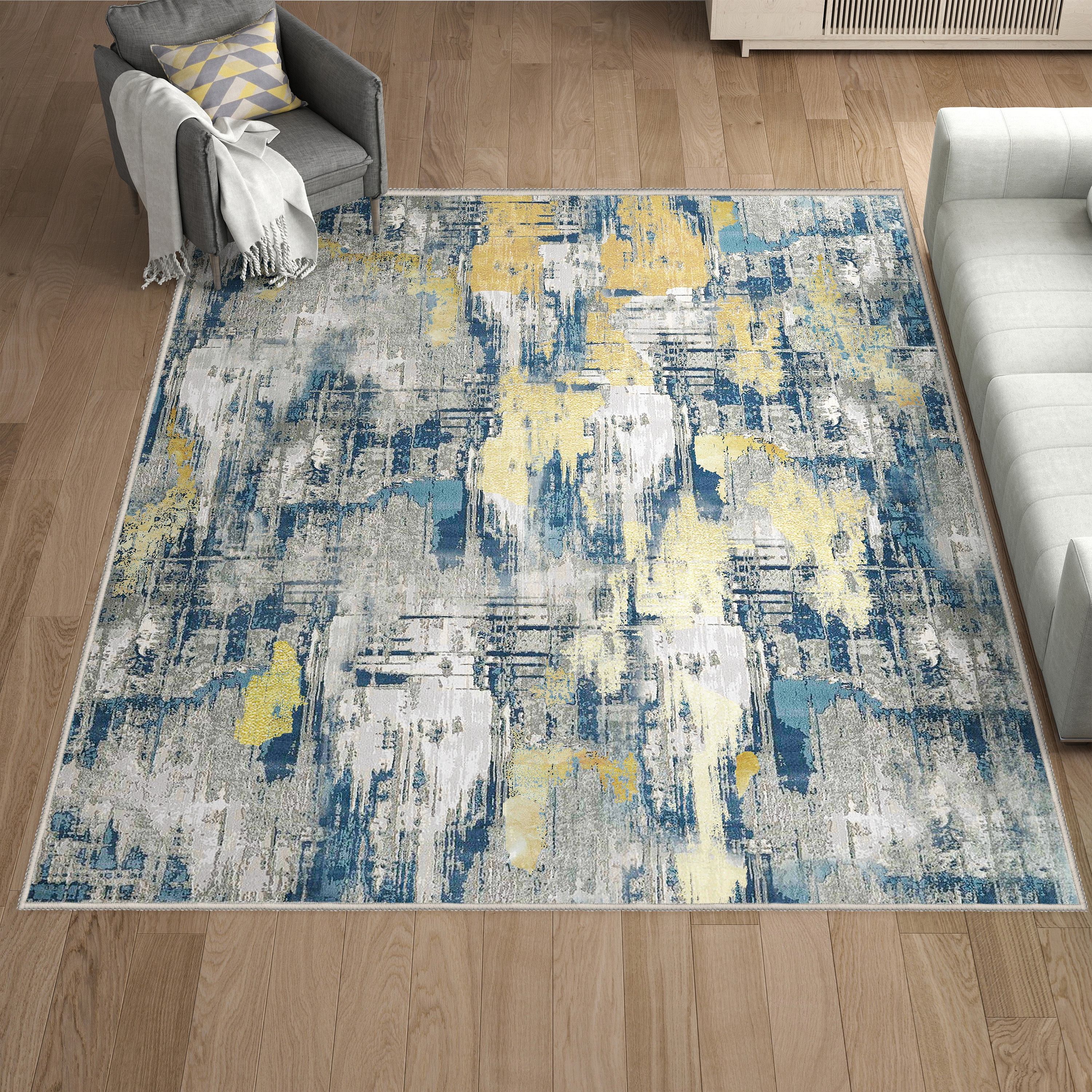 Modern Art Area Rug – 5x7, 6x9, 8x10, 9x12 FT – Non-Slip, Water Repellent, Washable Felt Carpet for Living Room, Bedroom, Dining Room, Office – Christmas Gift Idea